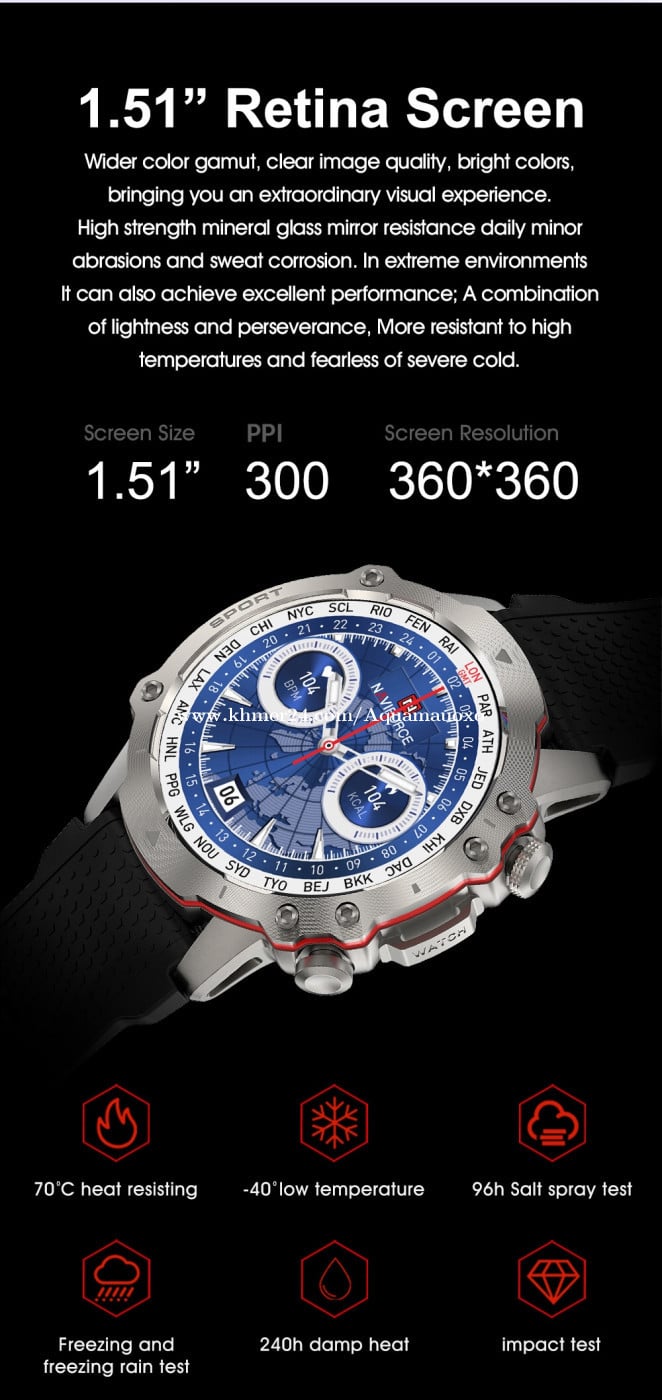 យើងរំភើបណាស់ដែលបានណែនាំផលិតផលចុងក្រោយរបស់យើងនាឡិកាវីវ៉ាលីហ្វ័រស៊ីស NT10 ។ នាឡិកានេះរួមបញ្ចូលការរចនាទាន់សម័យជាមួយនឹងបច្ចេកវិទ្យាជឿនលឿនដែលផ្តល់ជូននូវលក្ខណៈពិសេសនៃលក្ខណៈពិសេសដែលត្រូវបានបង្កើតឡើងសម្រាប់អ្នកដែលទាមទារនាឡិកាកីឡានៅខាងក្រៅដែលមានសមត្ថភាពខ្ពស់។ NaviForce NT10 មានលក្ខណៈពិសេសកម្រិតខ្ពស់និងអេក្រង់អេក្រង់លើសពីមានមុខងារច្រើនទំហំ 1,51 អ៊ីញផ្តល់នូវភាពងាយស្រួលក្នុងការទទួលបានទិន្នន័យសុខភាពតាមដានសកម្មភាពនិងមុខងារទំនាក់ទំនង។ អ្នកឃ្លាំមើលជំហ៊ានជំហ៊ានចង្វាក់បេះដូងនិងគុណភាពនៃការគេងក្នុងពេលវេលាជាក់ស្តែងធានាថាអ្នកបានទទួលព័ត៌មានអំពីសុខភាពរបស់អ្នក។ លើសពីនេះទៀតការរំលឹកការជូនដំណឹងដែលមានភ្ជាប់មកជាមួយធ្វើឱ្យអ្នកទាន់សម័យនៅលើការហៅទូរស័ព្ទនិងសារដោយរក្សាអ្នកភ្ជាប់ទៅនឹងពិភពលោកដែលនៅជុំវិញអ្នក។ ការរចនាប្លែកនិងទាន់សម័យនៃ Naviforce NT10 ផ្តល់ជូននូវការអំពាវនាវពិសេសរបស់រូបភាពដែលមានគុណភាពរូបភាពច្បាស់និងពណ៌រស់រវើក។ សិប្បកម្មពីវត្ថុធាតុដើមដែលមានគុណភាពខ្ពស់វាមានភាពធន់ទ្រាំនិងផ្តល់នូវជម្រើសខ្សែរប្រភេទផ្សេងៗគ្នានិងការរចនាហៅទូរស័ព្ទដែលធ្វើឱ្យវាក្លាយជាការលាយបញ្ចូលគ្នានៃម៉ូដនិងឧបករណ៍ប្រើប្រាស់។ ក្នុងនាមជាអ្នកលក់ដុំអ្នកអាចផ្តល់ជូនអតិថិជនរបស់អ្នកនូវផលិតផលដែលរួមបញ្ចូលបច្ចេកវិទ្យាជាមួយនឹងរបៀបរស់នៅយោធាផ្តល់ជូនអតិថិជននូវចំណង់ចំណូលចិត្តរបស់អតិថិជន។ សម្រាប់ព័ត៌មានបន្ថែមអំពីនាឡិកាដៃនាឡិកាដៃឆ្លាតវៃឬផ្តួចផ្តើមភាពជាដៃគូសូមទាក់ទងមកយើងខ្ញុំ។ គំរូទេ:nt10 បន្ទះឈីបវត្ថុធាតុដើម:JL7012A7 ការពារទឹកជ្រាប:អាយភី 68 ពណ៌: ខ្មៅ លេខកូដ HS:910212000xxxClick To Call ការទូទាត់丨: ABA Bank NAVIFORCE NT10 Smart Watch. This watch combines stylish design with advanced technology, offering a host of powerful features tailored for consumers who demand high-performance outdoor sports watches. The Naviforce NT10 features advanced smart technology and a 1.51-inch multi-function touchscreen, providing easy access to health data, activity tracking, and communication functions. It monitors steps, heart rate, and sleep quality in real-time, ensuring you stay informed about your health. Additionally, built-in notification reminders keep you updated on calls and messages, keeping you connected to the world around you. The unique and stylish design of the Naviforce NT10 delivers exceptional visual appeal with clear image quality and vibrant colors. Crafted from high-quality materials, it’s scratch-resistant and offers a variety of strap options and exquisite dial designs, making it a perfect blend of fashion and utility. As a wholesaler, you can offer your customers a product that combines technology with military style, catering to various consumer preferences. For more information about the NAVIFORCE NT10 Smart Watch or to initiate a partnership, please feel free to contact us. Model No.: NT10 Main control chip: JL7012A7S Waterproof: IP68 Colors: Black HS code: 9102120000 Payment 丨 : ABA Bank