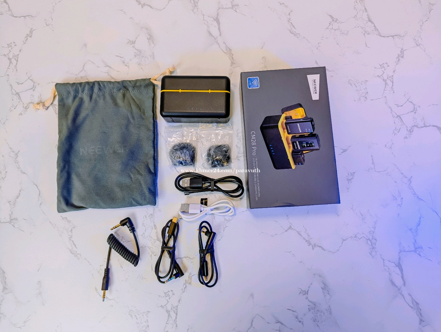 NEEWER CM28 PRO Wireless Lavalier Lapel Microphone System with Charging Case A professional wireless mic kit designed for vlogging, interviews, podcasts, live streaming, YouTube, TikTok, and fitness or outdoor recording. โ Professional Wireless Mic Kit โข 2 x Transmitters (TX) + 1 x Receiver (RX) โข Portable charging case (supports 2 full recharges) ๐ Long Battery Life โข Up to 9 hours (RX) and 8 hours (TX) per charge โข Auto power OFF after 5 minutes for energy saving ๐ง 4GB Built-in Storage โ Standalone Recording โข Each transmitter records up to 9 hours of 48kHz WAV audio โข Works even without connecting to a phone or camera โข 3 export modes: Mono, Stereo, MS โข LCD display shows battery, volume, recording, connection, and noise cancellation ๐ One-Click Noise Cancellation & Mute โข Easy tap control on transmitters โข Dual LED indicators โข Includes 2 windshields for clean outdoor sound ๐ก Strong & Stable Wireless Transmission โข Up to 200m / 656ft range (open area) โข Reliable signal with high resistance to interference ๐ฑ Compatibility โข iPhone 11โ16 series (Pro / Pro Max / Plus) iPad โข Samsung Galaxy S23 / S24 Ultra & Android phones โข Cameras, tablets, laptops (with included adapters) โข USB-C OTG supported ๐ฅ Perfect For Content creators, vloggers, teachers, influencers, interviewers, podcasters, livestreamers, and fitness instructors. Package Includes โข 1 x Charging Case โข 1 x Receiver (RX) โข 2 x Transmitters (TX) โข 2 x Windshields โข 1 x USB-C Charging Cable โข 1 x Camera Audio Cable โข 2 x OTG Adapter Cables โข 1 x Carry Pouch โข 1 x User Manual ๐ฆ Condition: New (Open Box)