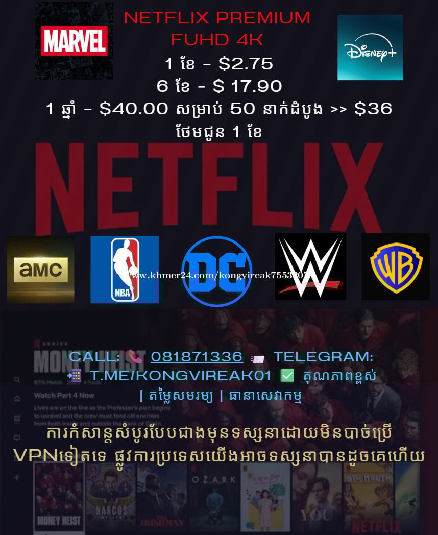 🎉ចូលឆ្នាំ 2026 ក្រុមហ៊ុនកុនលំដាប់អន្តរជាតិ NF បាទបើកឱ្យប្រទេសកម្ពុជាយើងទស្សនាកាន់តែសម្បូរបែប ភាពយន្តនិងកីឡាការផ្សាយបន្តផ្ទាល់ដោយយើងមិនបាច់ប្រើប្រាស់ VPN ទៀតទេ🤩 📩 ចាប់ផ្តើមឥឡូវនេះ! សូម Inbox ឬ Telegram ដើម្បីចុះឈ្មោះ ឬ សួរព័ត៌មានបន្ថែម។ 📞 Call: 📞 081871xxxClick To Call 📨 Telegram: 📲 t.me/kongvireak01 ✅ គុណភាពខ្ពស់ | តម្លៃសមរម្យ | ធានាសេវាកម្ម 🟩 អ្វីដែលអ្នកទទួលបាន៖ ✅ Premium Account (4K Ultra HD Quality) ✅ 1 Screen Only – មានតែអ្នកទេសម្រាប់មើល ✅ Profile ផ្ទាល់ខ្លួន – ដាក់ឈ្មោះអ្នកផ្ទាល់ ✅ Private Profile + PIN Code 🔒 គ្មាននរណាអាចចូលប្រើបានក្រៅពីអ្នក 🛡 ធានាសេវាកម្ម 100% សងលុយវិញ បើ៖ ⚠️ Account មានបញ្ហា ⚠️ មើលមិនគ្រប់រយៈពេល 💰 សងប្រាក់ចំនួនខែដែលនៅសល់
