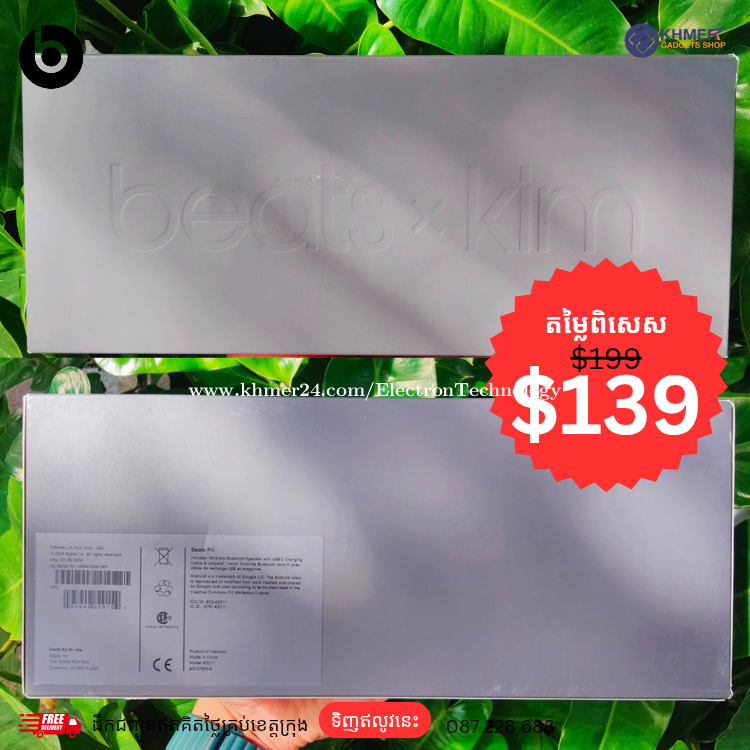 លក់ Beats Pill x Kim Kardashian Edition (ម៉ូដែលថ្មីចុងក្រោយ 2025)។ ពណ៌ពិសេសដែលកម្រមាន និងពេញនិយមបំផុត! For sale: Beats Pill x Kim Kardashian Special Edition (Latest 2025 Model). This is a rare, high-fashion collaboration in exclusive neutral colors. 🔥 JUST ARRIVED! Experience the perfect blend of high-end fashion and premium sound with the Beats Pill x Kim Kardashian Special Edition. Limited stock available! ✅ Promotion Price: $139 ✅ Condition: Brand New Sealed Box ✅ 100% Original & Authentic: You can verify your Beats by registering the serial number on the official website for peace of mind. 🎨 Available Colors: • Dark Gray (Model: MAX44LL/A) • Light Gray (Model: MAX24LL/A) ✨ Key Features / លក្ខណៈពិសេស: ✅Exclusive Design: Limited edition colors (Light Gray / Dark Gray) designed by Kim Kardashian. ✅Amazing Sound: Redesigned "racetrack woofer" for deeper bass and clear highs. It is much louder and clearer than the old models. ✅Speaker Maximum Output Power: 69 Watts🔊🔊 ✅Battery Life: Huge 24-hour battery. Listen all day and night without charging. ✅Fast Charging: A 10-minute charge gives you 2 hours of music! ✅**Waterproof (IP67): Safe for the pool, beach, or rain—it is dust and water-resistant. ✅Power Bank Feature: You can use the speaker to charge your iPhone or Android phone via USB-C. ✅Compatibility: Works perfectly with both iPhone and Android (One-touch pairing). ✅Condition: Brand New Sealed Box In the Box: Beats Pill Speaker, Carry Lanyard, USB-C to USB-C Cable,Warranty Card. 🚚 Special Offer: FREE Delivery within Phnom Penh! Don’t miss out on this stylish, high-performance speaker. Limited stock available! Location: In Rose Condo Garden City Near Aeon 1,Tonle Bassac, Khan Chamkar Mon,Phnom Penh Delivery: Free delivery in Phnom Penh / Shipping to provinces available Contact to order: 📥 Telegram: https://t.me/KhmerGadgetsSHOP ☎️ Phone: 015727xxxClick To Call #BeatsPill #KimKardashian #BeatsByDre #KhmerGadgets #PhnomPenh #BluetoothSpeaker #TechCambodia