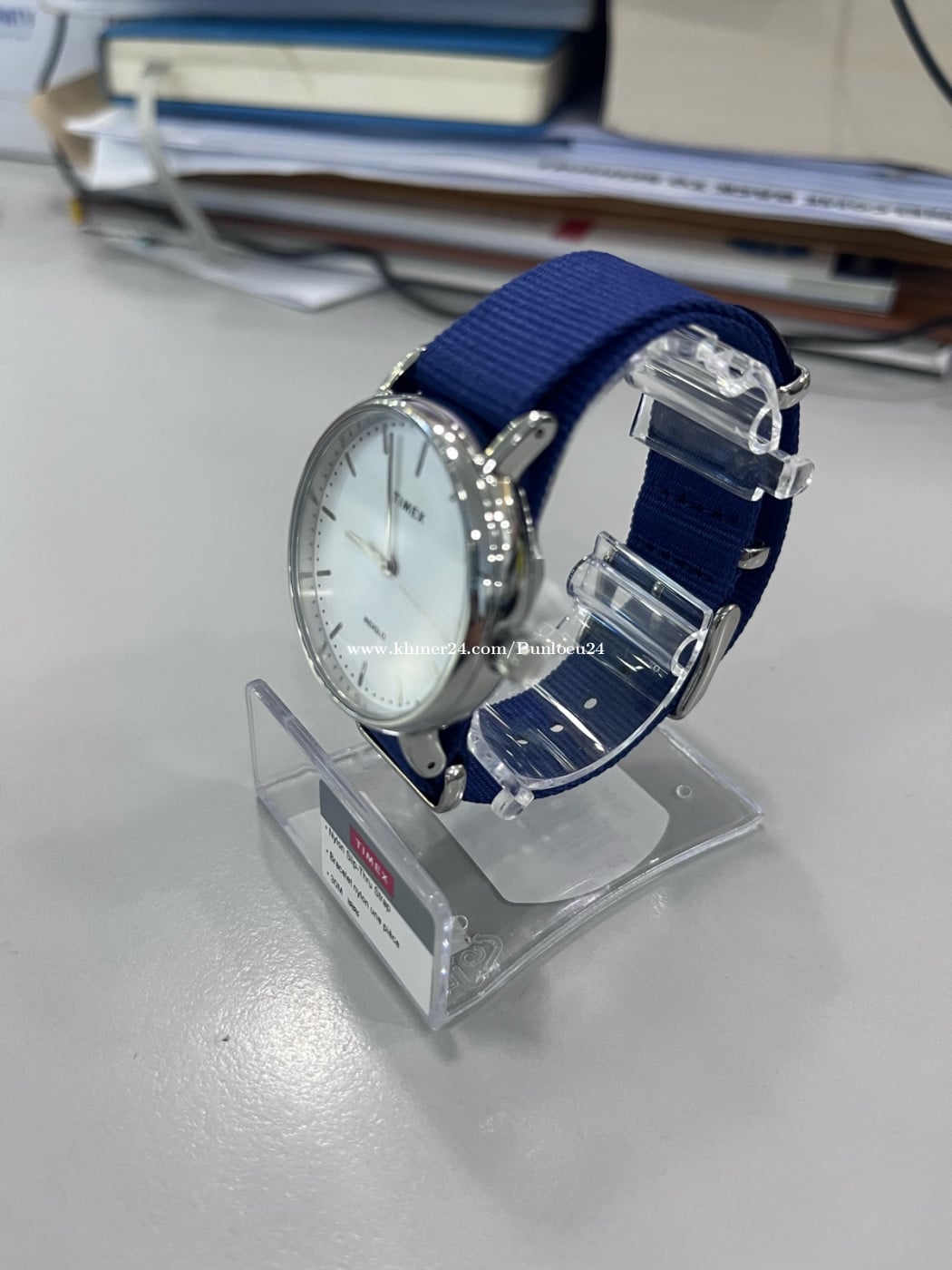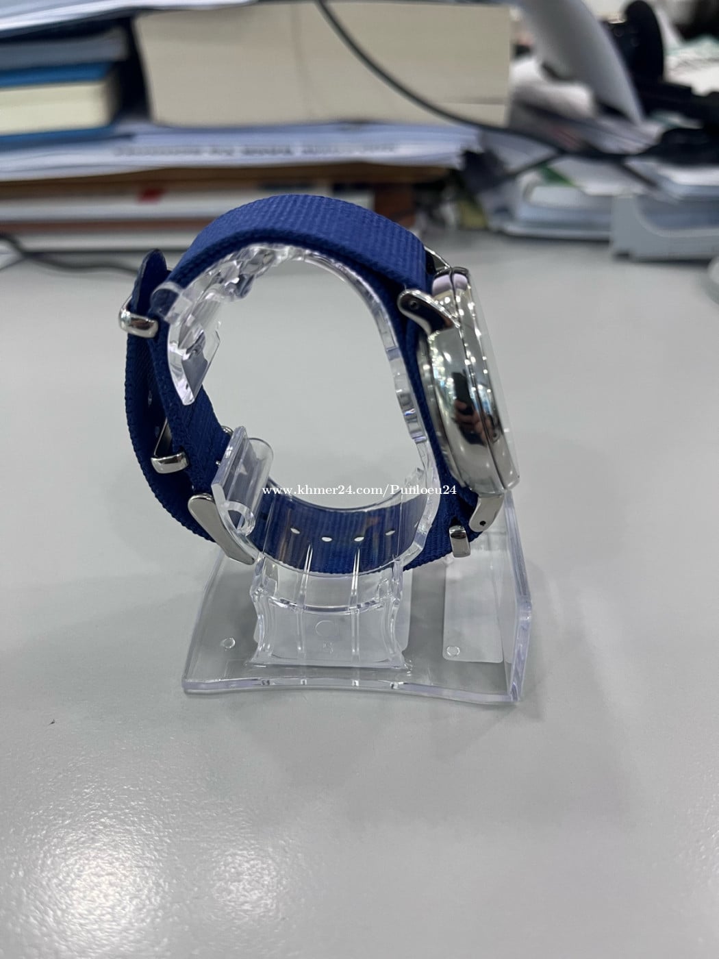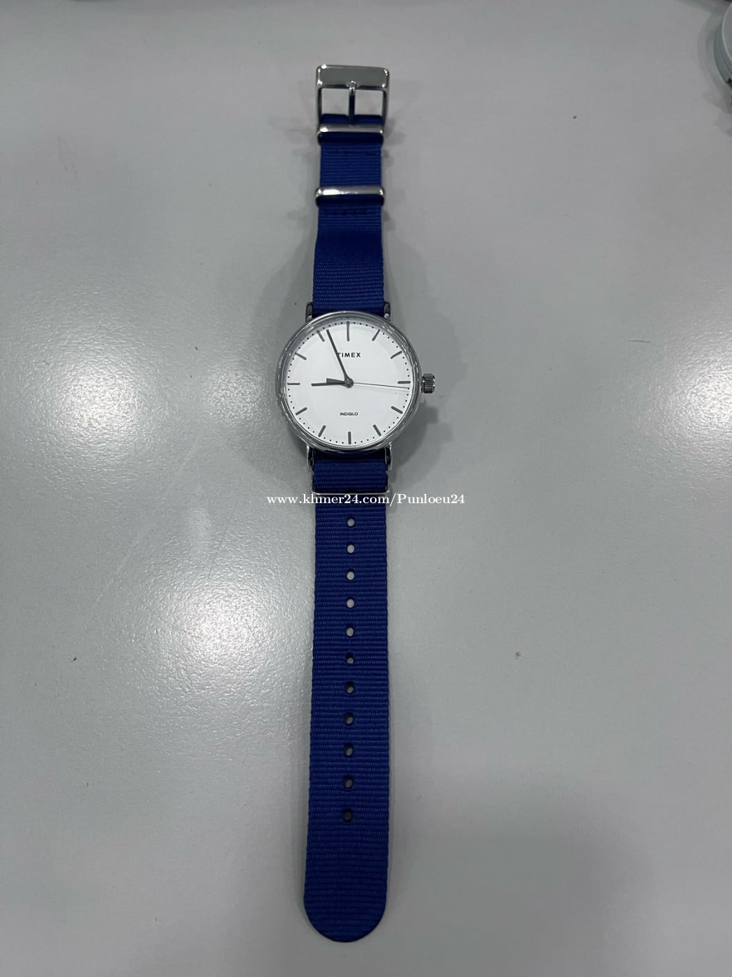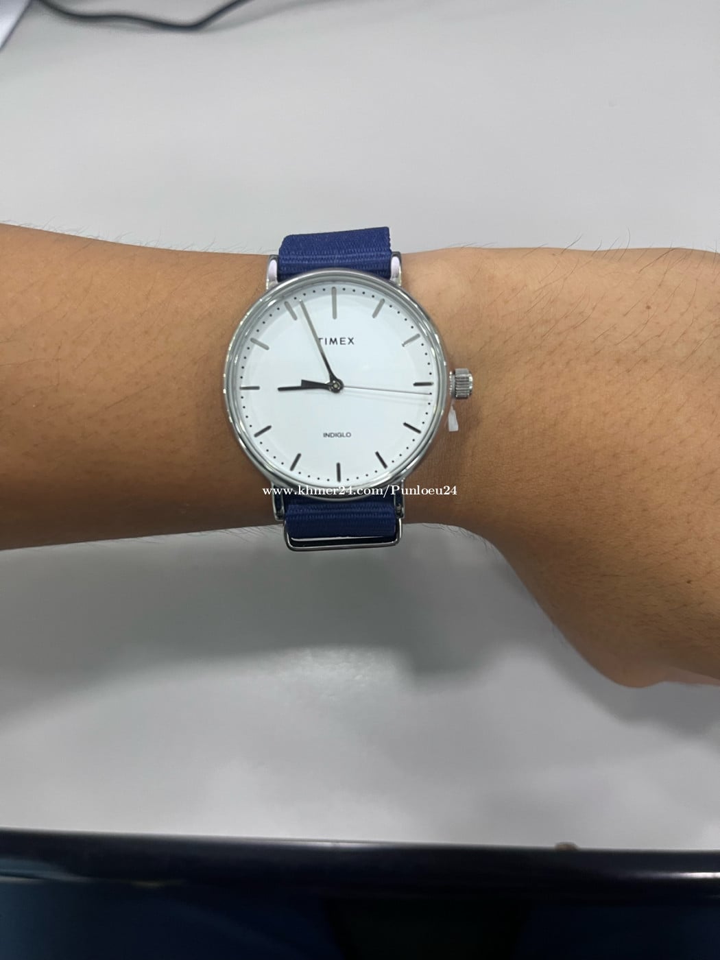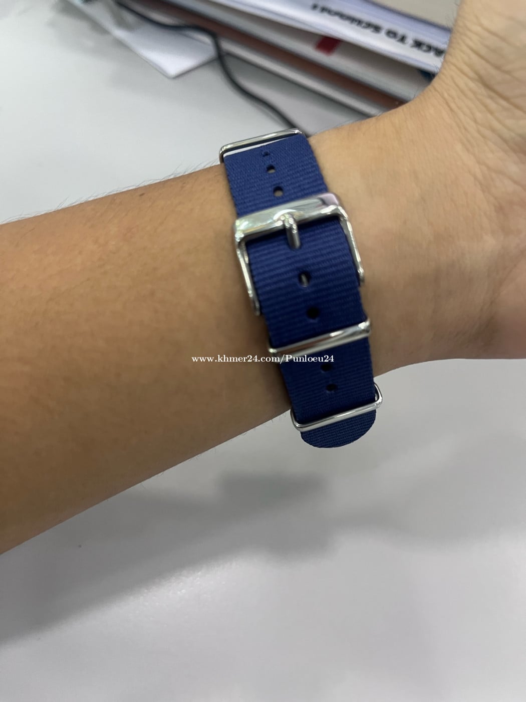 Unisex quartz watch, 37mm, nylon strap, has Indiglo option (push crown to light up) នាឡិកាពាក់បានទាំងប្រុស/ស្រី ទំហំ37មម ខ្សែនីឡុង មានមុខងារ Indiglo (ពេលចុចក្បាលរុយ មុខនាឡិកានឹងភ្លឺ)