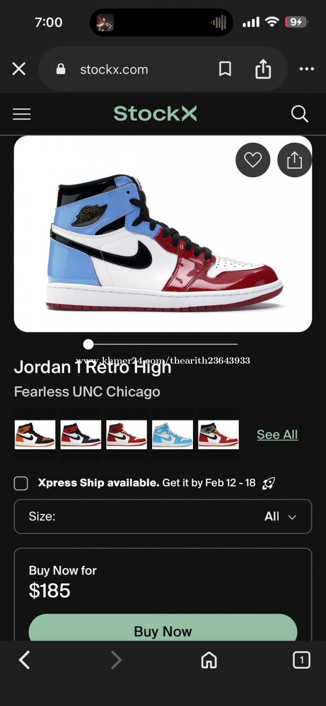 Nike Air Jordan 1 Retro High OG "Fearless UNC Chicago 99% condition 100%