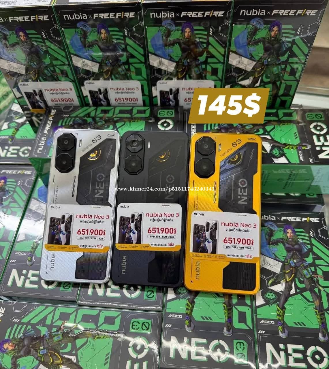 💥មកដល់ថ្មីទៀតហើយបងប្អូន 💕Nubia NEO 3 Neo3ជាស្មាតហ្វូនលេងហ្គេមកម្រិតថវិការមានអេក្រង់ធំ 6.8 អ៉ីងជាមួយសមត្ថភាពខ្លាំង 🔥 បំពាក់បន្ទះឈីប Gaming មានថ្មធំជាមួយល្បឿនសាកលឿន ព្រមទាំងទទួលបាននូវរូបរាងថ្មីកាលីបស្រស់ស្អាត និងមានភ្លើង Hero Eye LED Lighting អាចបញ្ចេញចលនាពេលជូនដំណឹង និងពេលលេងហ្គេមបានច្រើនម៉ូត 💯💯💯✅✅✅ ❇️ចំណុចខ្លាំងរបស់ Nubia NEO 3 មានដូចជា៖ ❇️មានអេក្រង់ធំ 6.8 អ៉ីងជាមួយល្បឿនចលនាបង្ហាញ 120Hz Refresh Rate🧡 ❇️បំពាក់បន្ទះឈីប Game ពី Unisoc T8100 Octa-Core 6nm 2.2GHz ❇️មានថាមពលថ្មធំ 6000mAh ជាមួយល្បឿនសាកលឿន 33W Fast Charge Nubia NEO 3 មានតម្លៃ ៦៥១,៩០០៛ ($159) RAM 8GB/128g លក់ជូនត្រឹមតែ 145$ ប៉ុណ្ណោះ Free ជើងទ្រ នឹង កាស Bluetooth