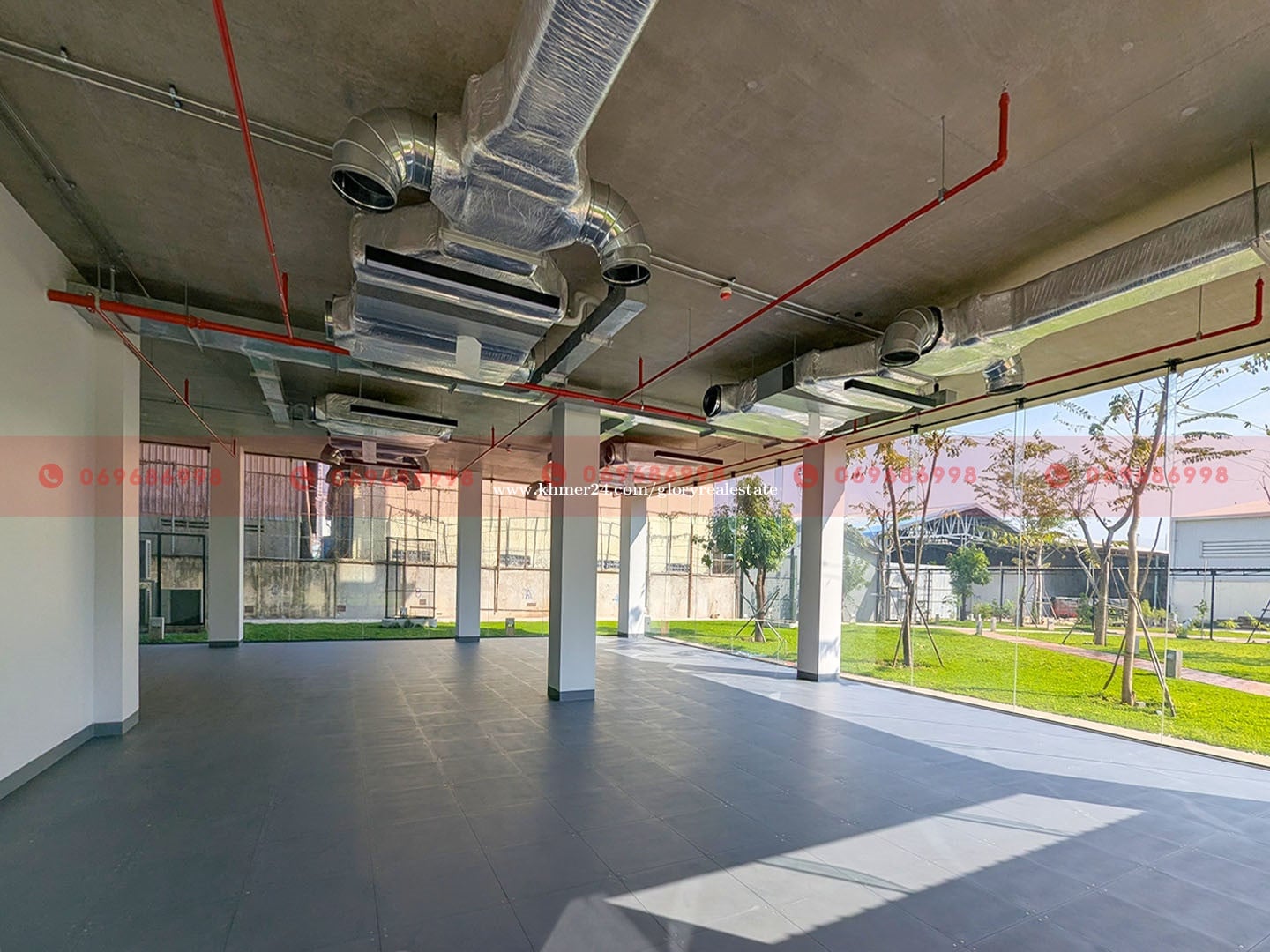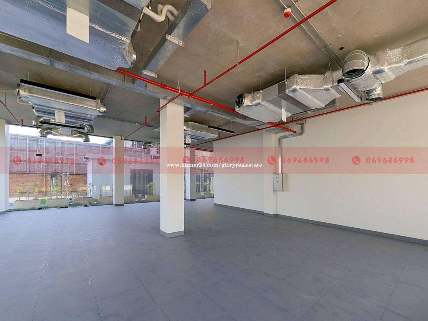 These office spaces are now available for lease along a major road in the Russei Keo area of Phnom Penh. The property can be leased as a floor or by individual sections, offering flexibility for office users seeking a professional, well-managed location. Property Overview - Floor area: from 76 to 526 sqm - Building height: 5 floors - Outdoor space: Ample common land with landscaped greenery - Parking: up to 250 parking spaces available Available Unit Sizes (Sectional Leasing) - Space sizes: 76 sqm, 77 sqm, 165 sqm, 167 sqm, 149 sqm, 159 sqm, 218 sqm, 231 sqm, 280 sqm - Floor sizes: Ground = 485 sqm, First = 526 sqm, Second = 526 sqm, Third = 511 sqm, Fourth = 511 Sqm Handover Conditions - External glass demarcation partitions and glass entrance doors - Recessed lighting with open ceiling - Installed air-conditioning units - Firefighting sprinkler system and smoke detectors - Raised flooring - Tenants are responsible for interior renovation, fixtures, and decorations, subject to approval of the renovation plan. Services Provided - One (1) car parking space and five (5) motorcycle parking spaces are provided per 100 sqm of leased area. - Common area cleaning and garbage disposal - 24/7 security service - Backup power supply - Common area electricity and water - Maintenance of common areas (washrooms, parking, garden, walkways) - Air-conditioning maintenance every 4 months - Maintenance of building equipment (generator, firefighting system, etc.) Fees & Utilities - Management fee: USD 3/sqm (subject to 10% VAT) - Electricity: USD 0.30/kWh - Water: USD 0.80/m³ (Included in the management fee if leased as an office) - Parking charges are USD 50.00 per car per month and USD 10.00 per motorcycle per month. Suitable For - Corporate or representative offices This building offers excellent visibility, flexible leasing options, and comprehensive building services, making it an ideal choice for businesses in the Russei Keo area. 👉 Property ID: GP-61972 For more information or to schedule a viewing, please don’t hesitate to contact us. 📲 Call: 069686xxxClick To Call/099688xxxClick To Call 💬 Telegram: t.me/glorycam 💬 WhatsApp: https://wa.me/+85569686998 💬 WeChat: gloryrealestate 📧 Email: con****@glorycambodia.comClick To Sent Email