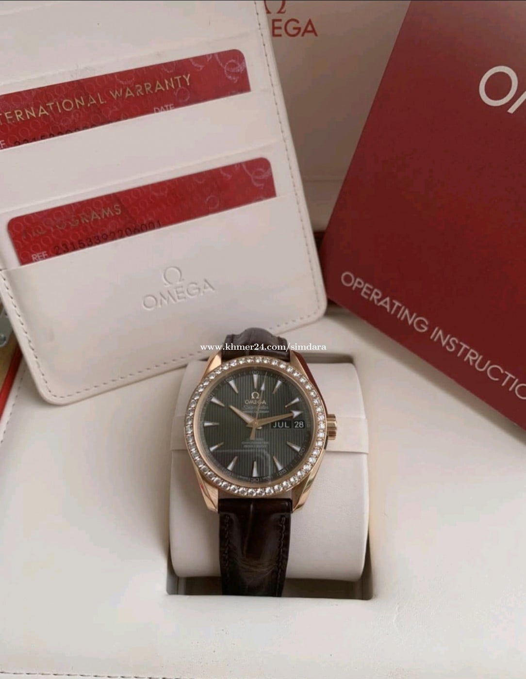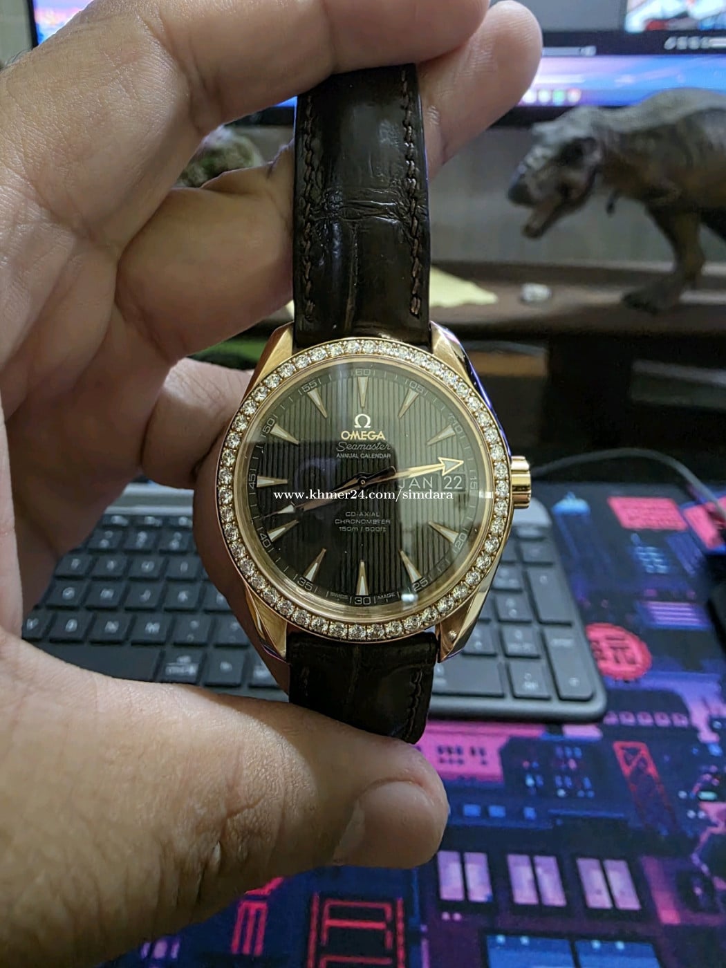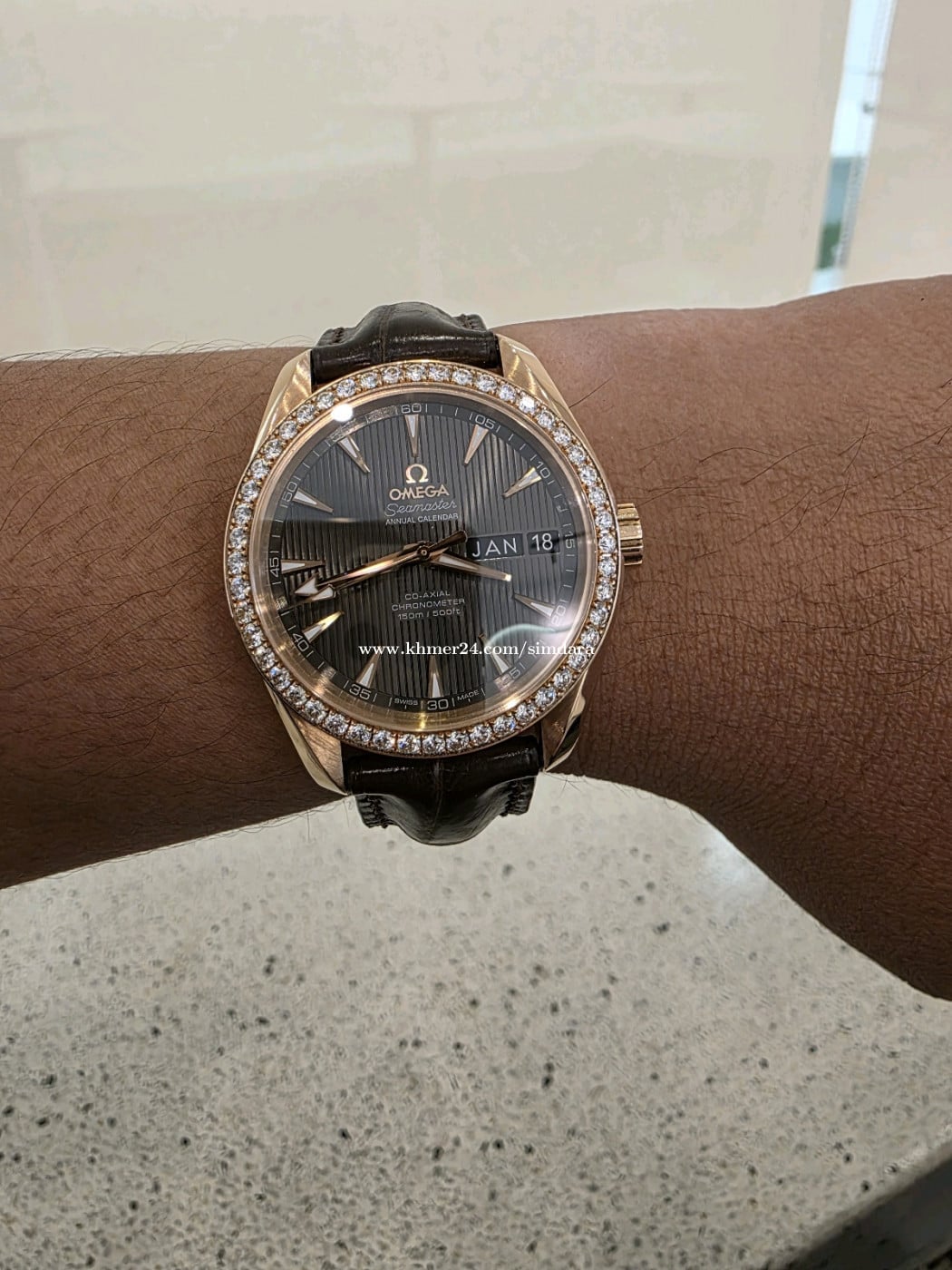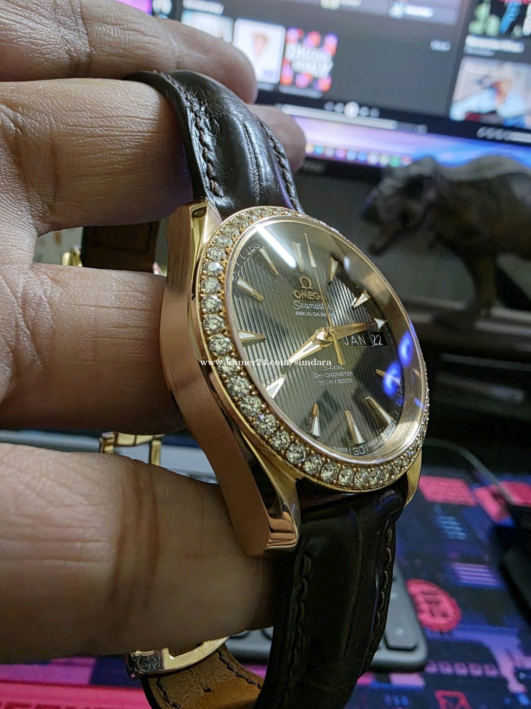 omega seamaster aqua terra rose gold 18k co-axial 38.5 mm ដាំពេជ្រថែម 2លី 47គ្រាប់