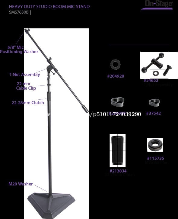16 lb low-profile hexagonal base delivers unobtrusive stability for long boom support Durable construction ensures dependable performance Heavy-duty clutch reliably adjusts height 42"–72" for use in a wide range of applications Telescoping boom adjusts in length 32.5"–47" for precise mic placement
