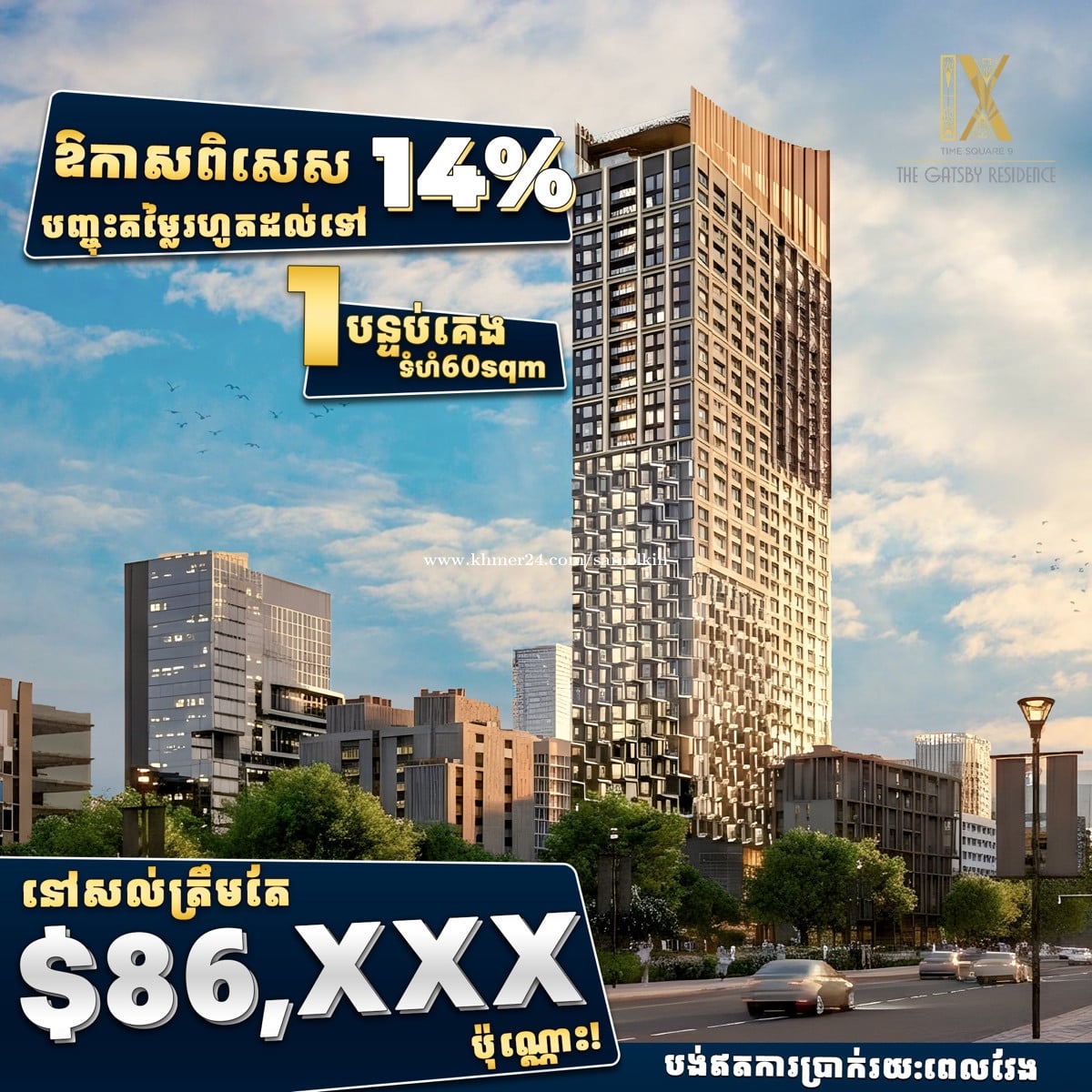 ⏳ LAST CHANCE: Own BKK1 Luxury for Less! 🔷The secret is out, and units at Time Square 9 - Gatsby Residence are moving fast. 💰Price: From just $1,700/sqm (Unmatched in BKK1) 🔷Offer: Only $500 to reserve your unit today 🔷Terms: 0% Interest payment plans for 𝟒𝟓 months ✍️Don't miss the highest ROI opportunity of 2026. 🔷High floors and corner units are limited 📍 Visit our showroom at Street 278 today! ———————————————— 📞 093536xxxClick To Call/ 061536xxxClick To Call 👉Telegram: https://t.me/internalsaleteam #condominium #undermarketprice #bestlocation #TimeSquare9 #BKK1