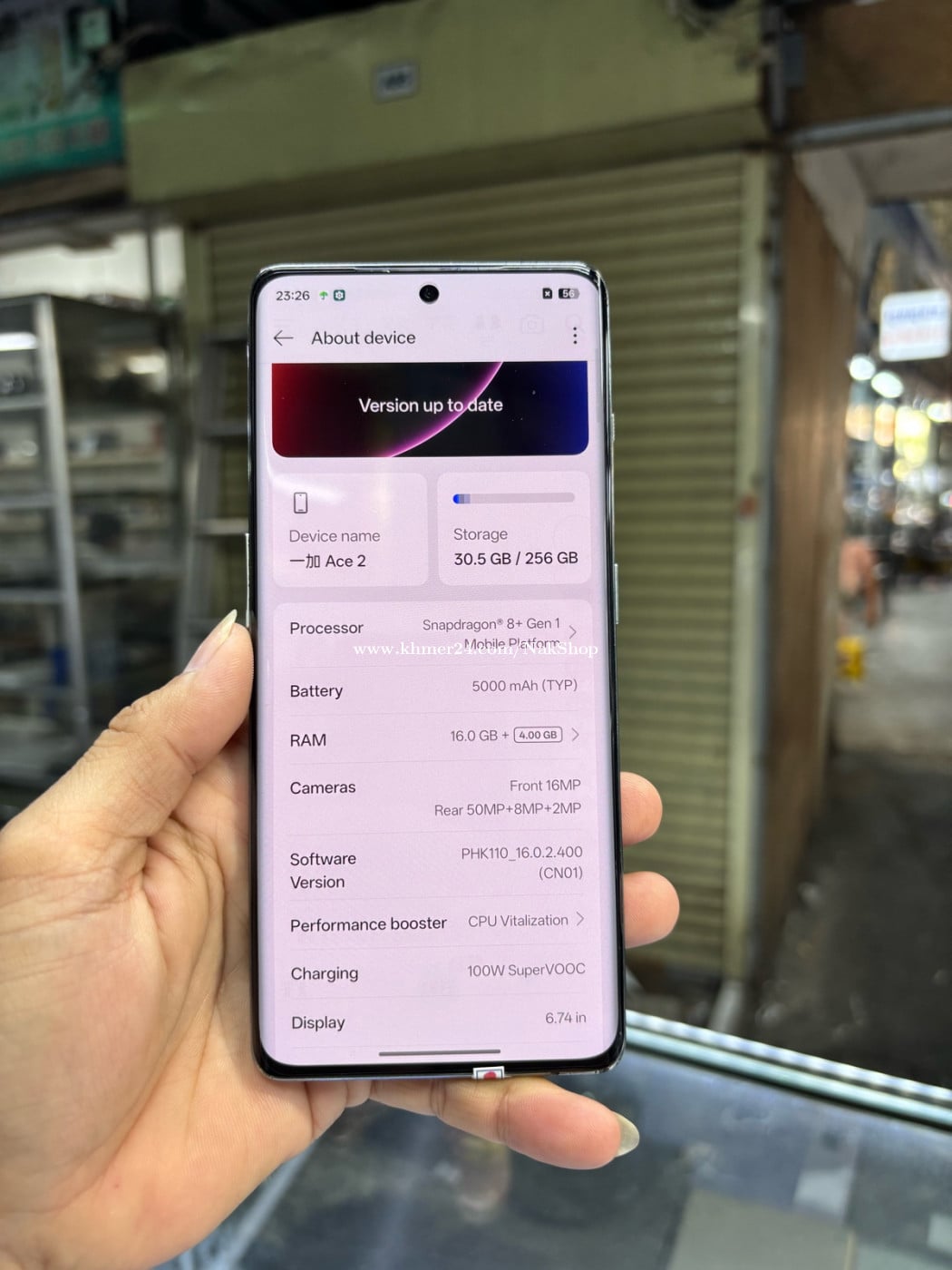 Oneplus ACE2 256G Ram16G Sim2 CH ម៉ាសុីនស្រុីន កូតកញ្ចក់Camrea តិច ដានតិច