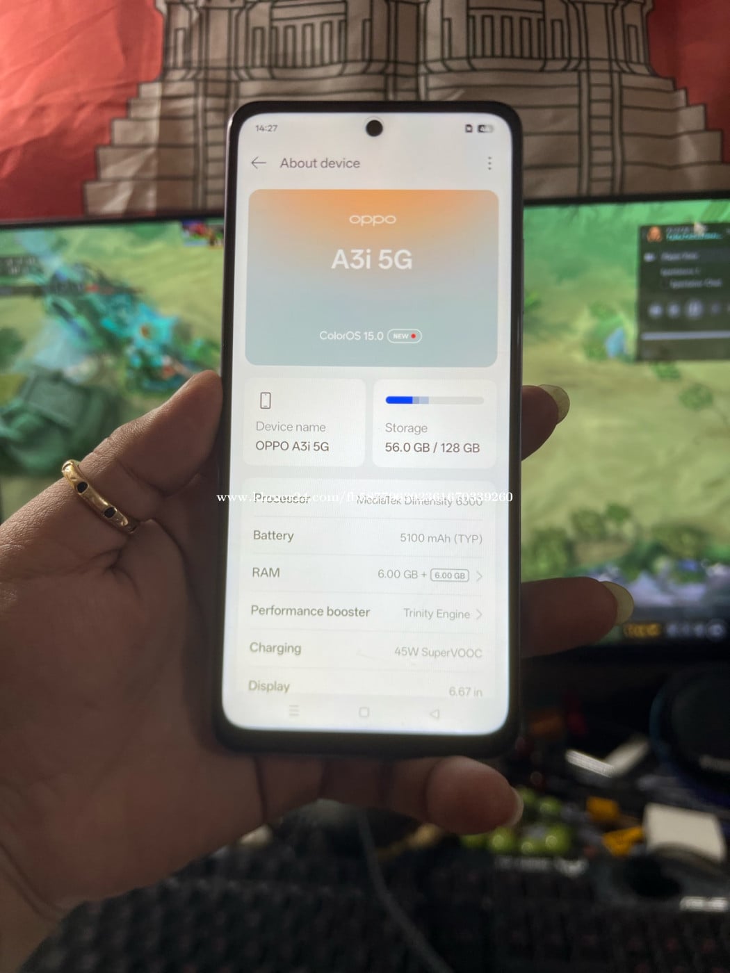 Oppo A3i 5G / ram6g+6g / 128g / CN sim2 / ស្កេនមុខស្កេនក្រយ៉ៅដៃ សុំណុំហ្សុីនស្អាត 99% អេក្រង់ 120Hz មានស្កីនហ្សុីនខេសហ្សុីន ថ្មកាន់ 5100mAh camara ថតច្បាស់មុខក្រោយ លក់តំលៃក្រោមទីផ្សារនៅកម្ពុជា 🇰🇭 85$ ដាច់ ☎️📞0968911xxxClick To Call telegram📞☎️