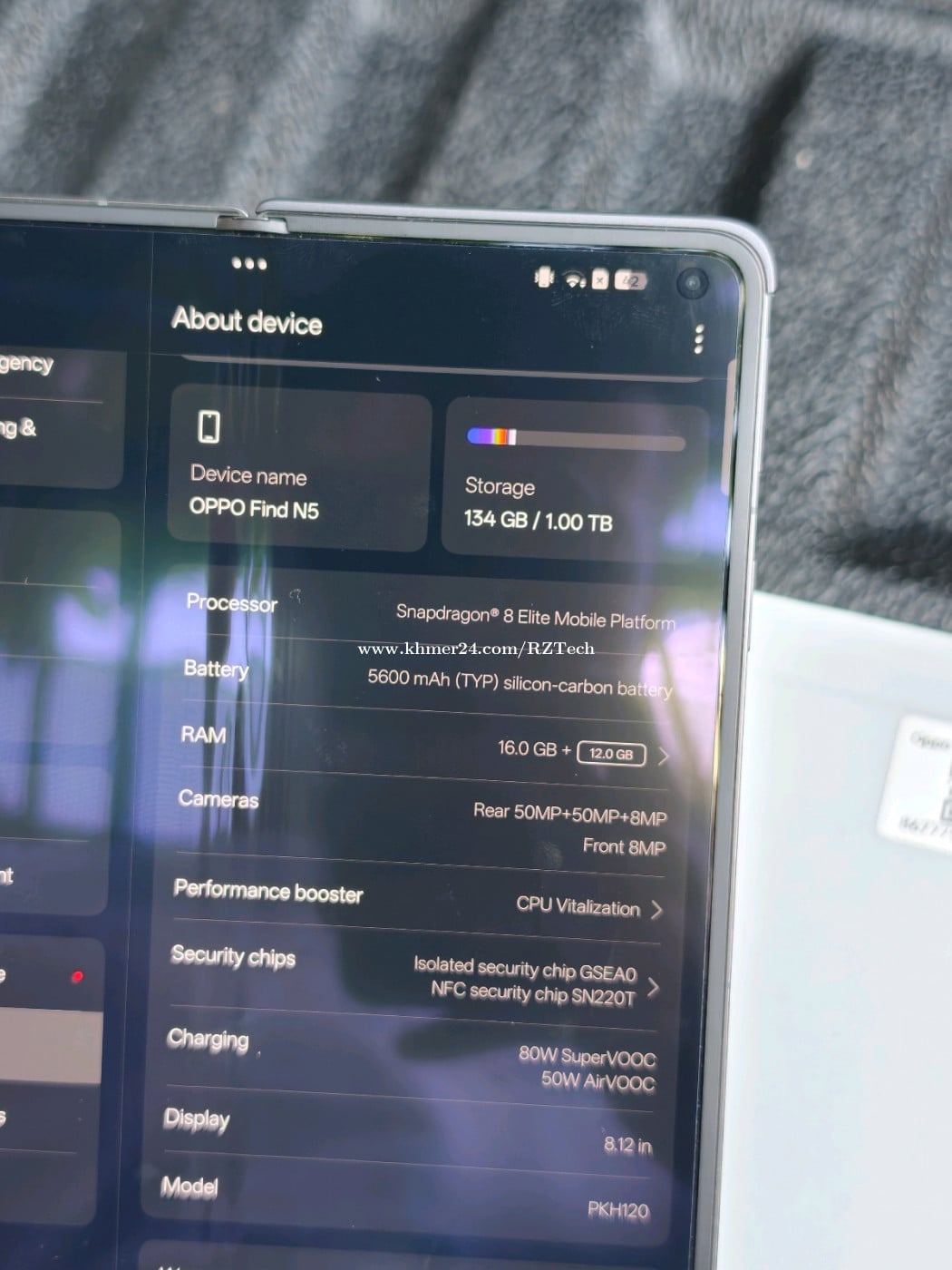 Oppo find N5 99.99% 1TB (china version) នៅថ្មីណាស់ មានគ្រឿងមានប្រអប់១ឈុត version ចិន តែប្រើ smooth ជាងglobalទៀត notification facebook telegram អីអត់មានយឺតទេ.