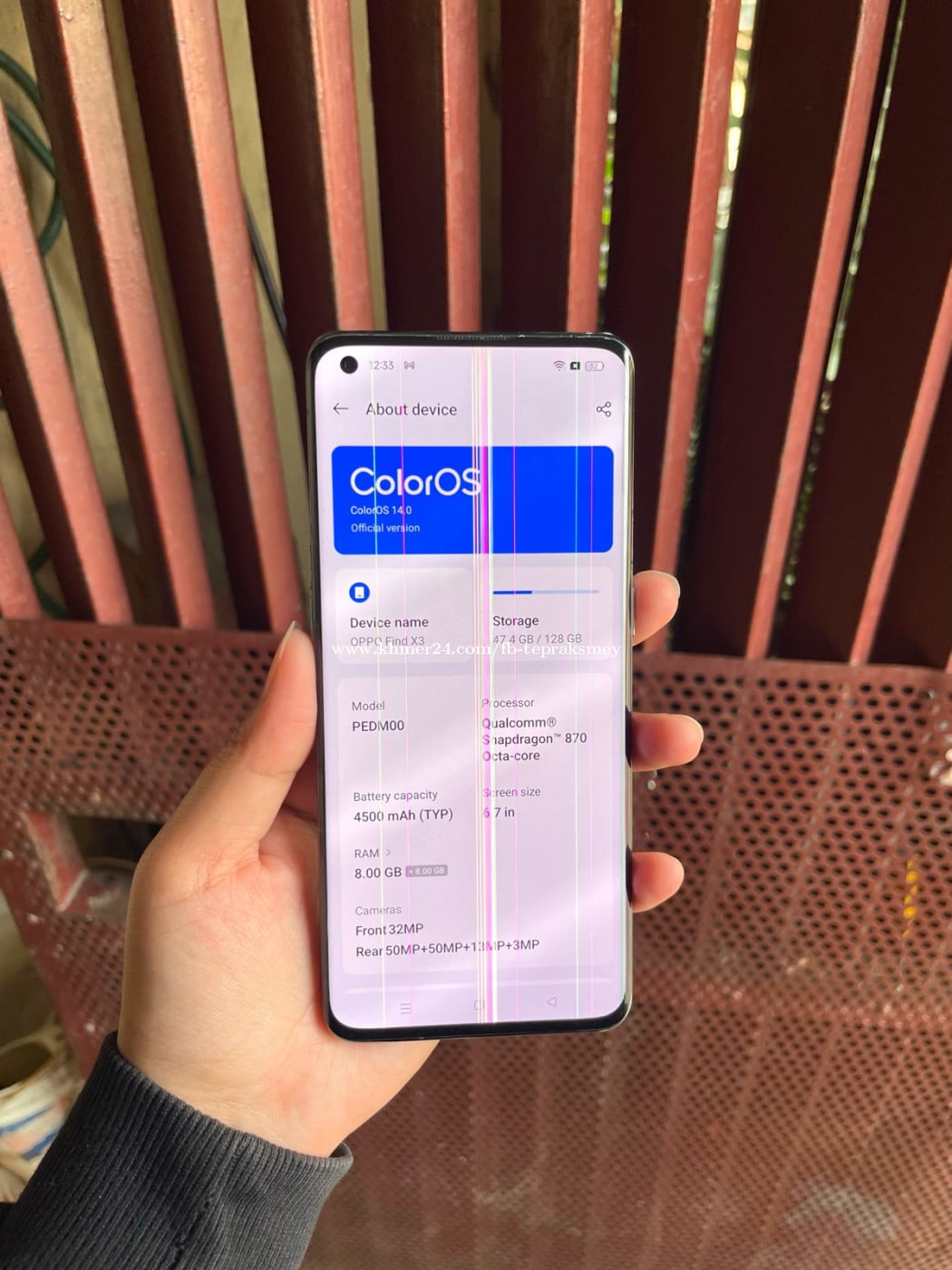Oppo Find X3 Ram8.00G / 128G អេក្រង់សុិនឆ្នូតដូចរូប cameraច្បាស់មុខក្រោយ សុីម2 Version CH តម្លៃ:80$ដាច់