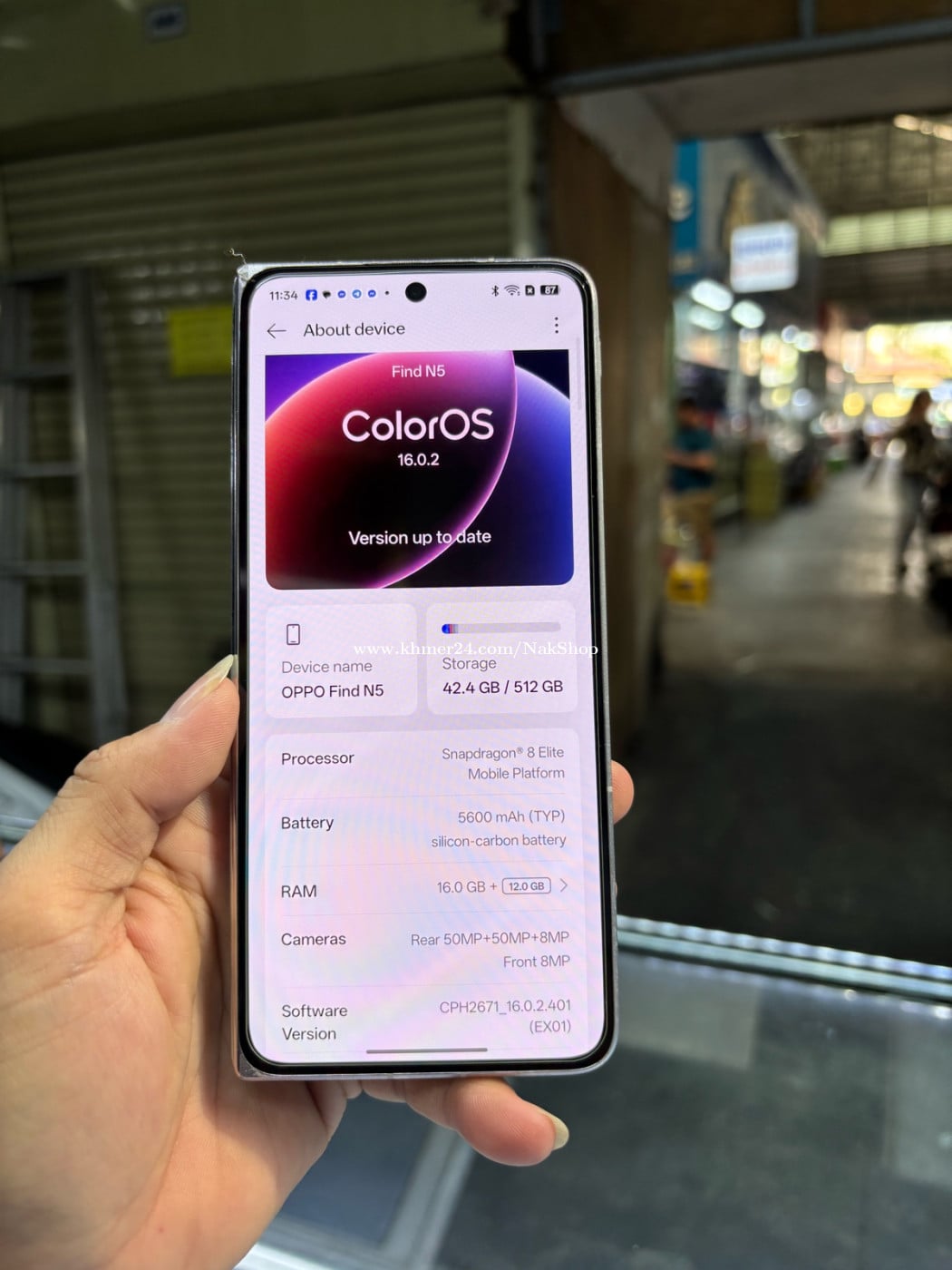 Oppo FindN5 512G Ram16G Sim2 global ខូចអេក្រង់ខាងក្នុងប្រើបានខាងក្រៅ