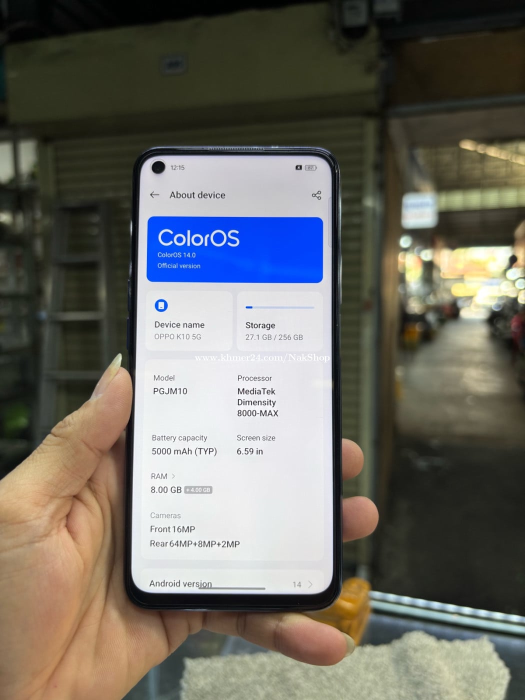 Oppo K10 5G 256G Ram8G Sim2 CH ម៉ាសុីនសានុំស្រុីន