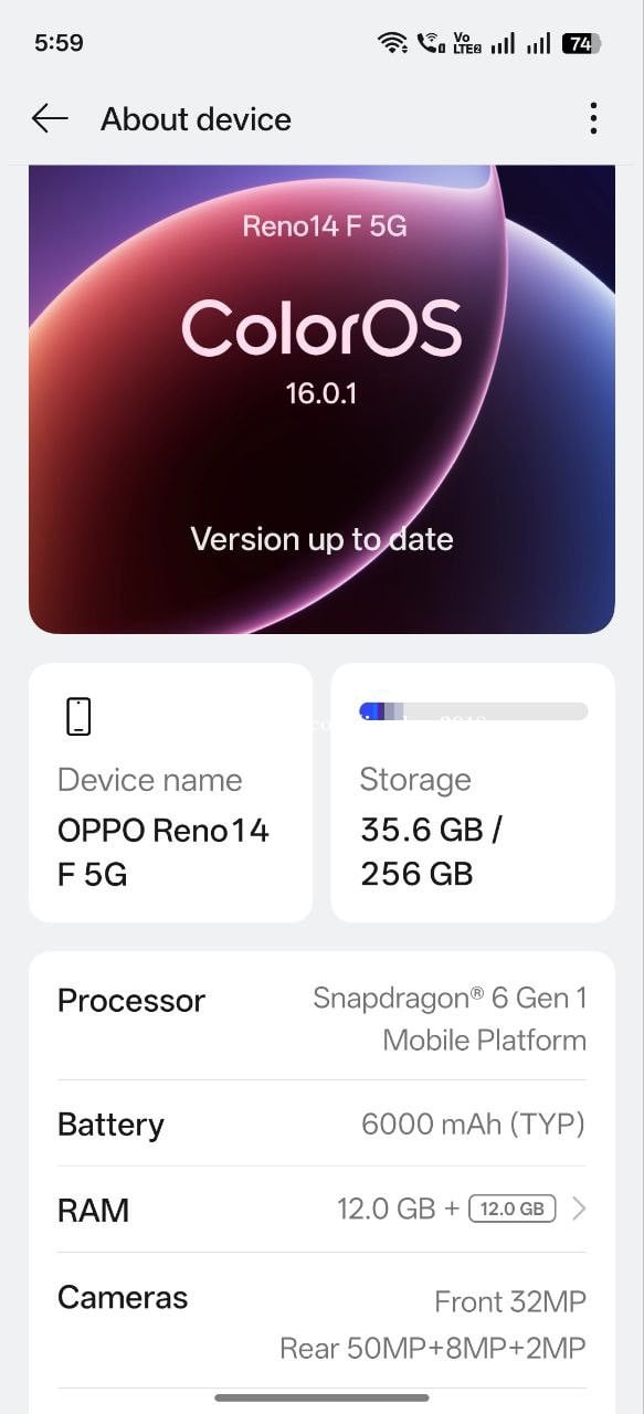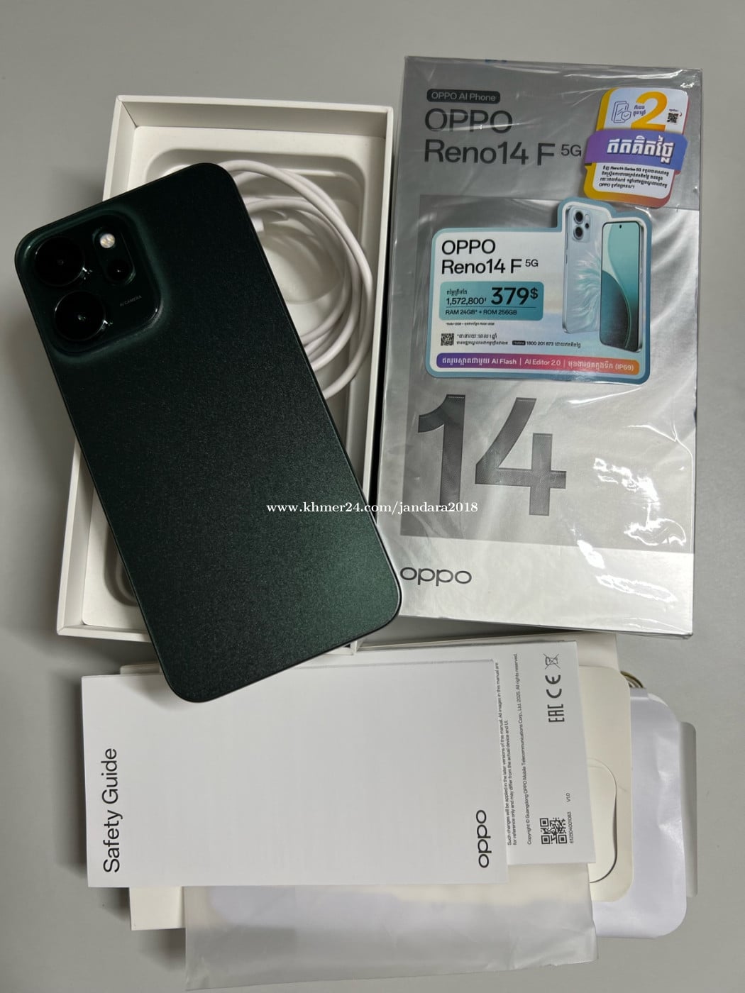 Oppo Reno 14F 5G 256G Ram 12+12G ទើបប្រើបាន១ខែជាង នូវធានាក្រុមហ៊ុន