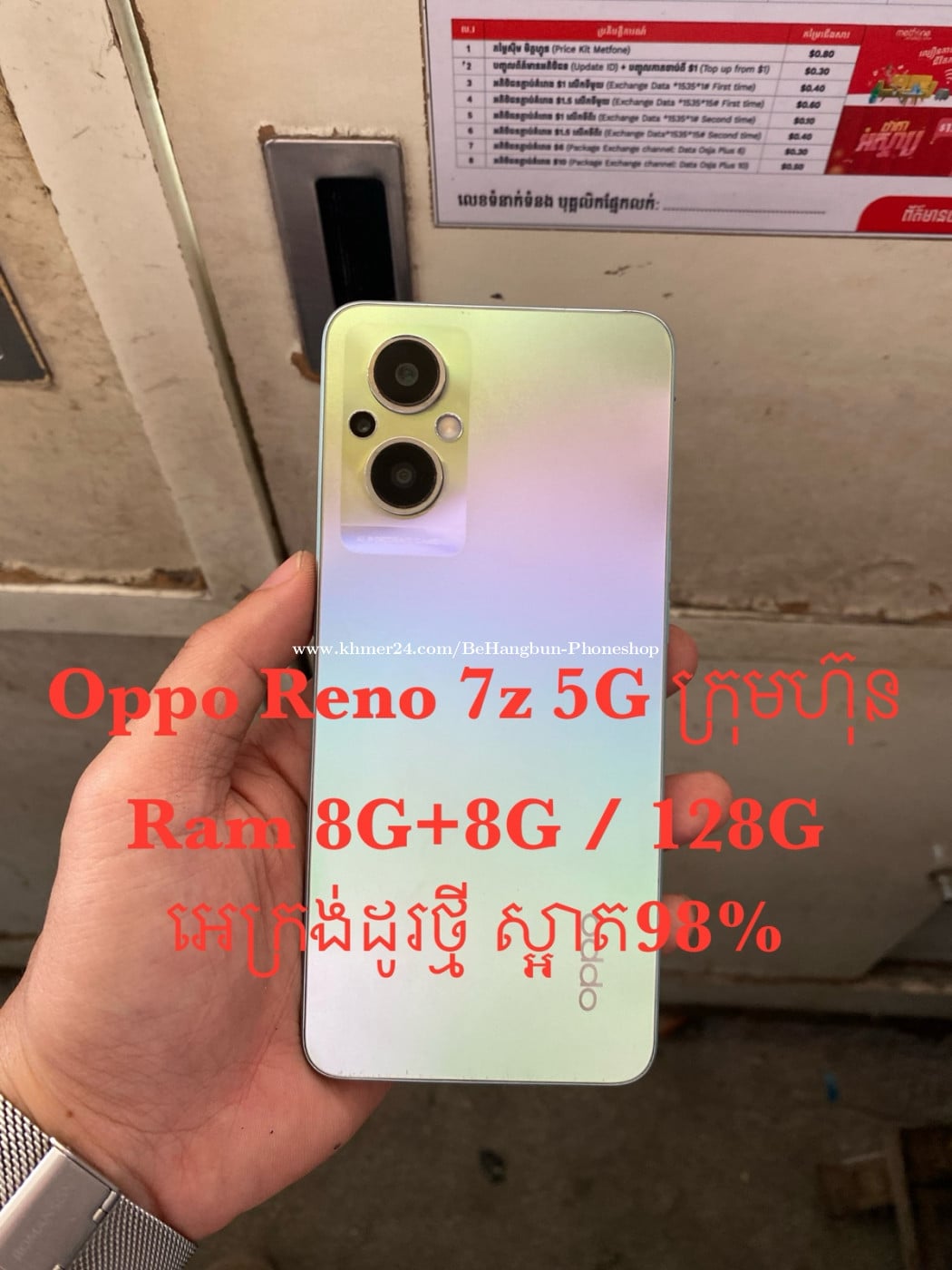 Oppo Reno 7z 5G ក្រុមហ៊ុន Ram 8G+8G / 128G អេក្រង់ដូរថ្មី ស្អាត98.99% ធានាម៉ាសុីនហ្សុីន នឹងធានាការប្រេីប្រាស់រយៈពេល15ថ្ងៃ មានឆ្នាំងសាក មានសេវាដឹកជញ្ជូន25ខេត្ត-ក្រុង ទីតាំង : ជិតស្តុបលូប្រាំ ស្ទឹងមានជ័យ Tel : 099777xxxClick To Call / 081336xxxClick To Call / 0972312xxxClick To Call