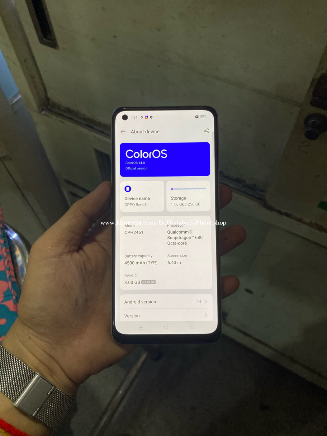 Oppo Reno 8 ក្រុមហ៊ុន Ram 8G+8G / 256G មួយទឹកស្អាត99% អេក្រង់AMOLED 90Hz ធានាម៉ាសុីនហ្សុីន អេក្រង់ហ្សុីន នឹងធានាការប្រេីប្រាស់រយៈពេល15ថ្ងៃ មានឆ្នាំងសាក មានសេវាដឹកជញ្ជូន25ខេត្ត-ក្រុង ទីតាំង : ជិតស្តុបលូប្រាំ ស្ទឹងមានជ័យ Tel : 099777xxxClick To Call / 081336xxxClick To Call / 0972312xxxClick To Call