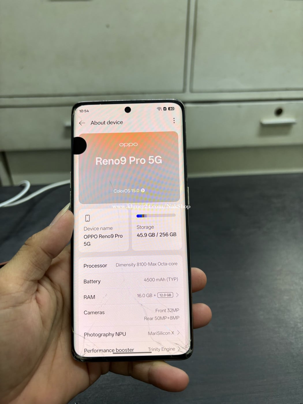 Oppo Reno9pro plus 256G Ram16G ប្រើបានWiFi បែកថាច់ជាំ
