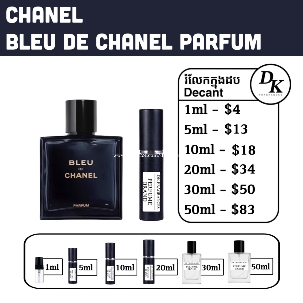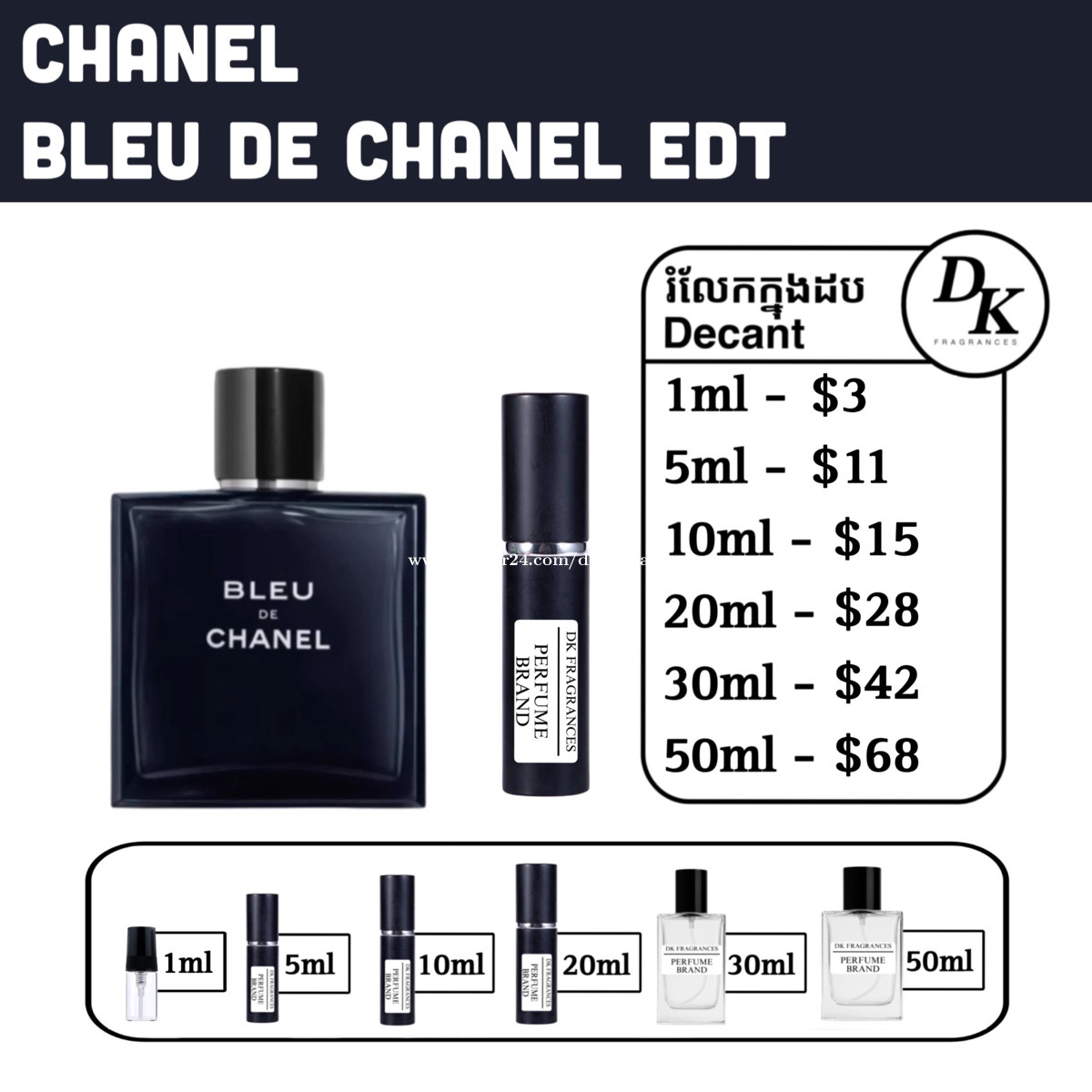 Bleu de chanel for men | Original perfumes bleu de chanel edt 100ml full box - $129 bleu de chanel edp 100ml full box - $159 bleu de chanel parfum 100ml full box - $169 bleu de chanel l’exclusif 2025 100ml full box - $259 រំលែកក្នុងកូនដប/Decant in testing bottles: 1ml, 5ml, 10ml, 20ml, 30ml, 50ml. DK Fragrances គឺធានាលោកអ្នកជាមួយនឹងឥវ៉ាន់សុទ្ធ original 100%។ ជួញដូរដោយក្ដីស្មោះត្រង់។ ខាងខ្ញុំលក់ជា Full box (ដបធំ) និងរំលែកពី ដបធំ ចូលកូនដបសម្រាប់អ្នកចង់តេស្តក្លិន។ មិចបានតម្លៃធូរជាងក្នុងហាង? ដោយសារតែឥវ៉ាន់ ខាងខ្ញុំយកស្តុកចូលច្រើនៗ បានតម្លៃល្អហើយក៏ឲ្យអ្នកទិញបានតម្លៃល្អដូចគ្នា។ ទំនាក់ទំនងតាម Telegram: 011841xxxClick To Call Telegram channel: https://t.me/dkfragrancess ពត៌មានបន្ថែមអាចឆែកគេហទំព័រយើងខ្ញុំ: https://shoplinks.to/dkfragrances Note: DK Fragrances is an online-based original perfume discounter in Phnom Penh, Cambodia (Est. 2024). We sell perfumes as in Full bottle (the original bottle), and decants (original perfume liquid extracted from big bottle and transferred to vials for testing purposes). We’ve executed thousands of successful sales—check out our Instagram to see real reviews and feedback from customers. Contact us on Telegram, or visit our website. Telegram channel: https://t.me/dkfragrancess Our website: https://shoplinks.to/dkfragrances