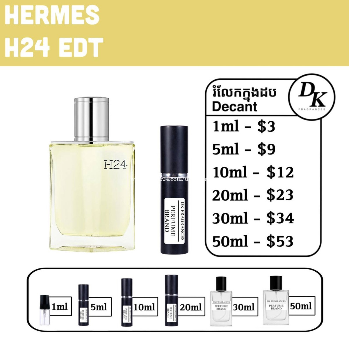 Hermes H24 edt 100ml full box - $85 រំលែកក្នុងកូនដប/Decant in testing bottles: 1ml, 5ml, 10ml, 20ml, 30ml, 50ml. DK Fragrances គឺធានាលោកអ្នកជាមួយនឹងឥវ៉ាន់សុទ្ធ original 100%។ ជួញដូរដោយក្ដីស្មោះត្រង់។ ខាងខ្ញុំលក់ជា Full box (ដបធំ) និងរំលែកពី ដបធំ ចូលកូនដបសម្រាប់អ្នកចង់តេស្តក្លិន។ មិចបានតម្លៃធូរជាងក្នុងហាង? ដោយសារតែឥវ៉ាន់ ខាងខ្ញុំយកស្តុកចូលច្រើនៗ បានតម្លៃល្អហើយក៏ឲ្យអ្នកទិញបានតម្លៃល្អដូចគ្នា។ ទំនាក់ទំនងតាម Telegram: 011841xxxClick To Call Telegram channel: https://t.me/dkfragrancess ពត៌មានបន្ថែមអាចឆែកគេហទំព័រយើងខ្ញុំ: https://shoplinks.to/dkfragrances Note: DK Fragrances is an online-based original perfume discounter in Phnom Penh, Cambodia (Est. 2024). We sell perfumes as in Full bottle (the original bottle), and decants (original perfume liquid extracted from big bottle and transferred to vials for testing purposes). We’ve executed thousands of successful sales—check out our Instagram to see real reviews and feedback from customers. Contact us on Telegram, or visit our website. Telegram channel: https://t.me/dkfragrancess Our website: https://shoplinks.to/dkfragrances