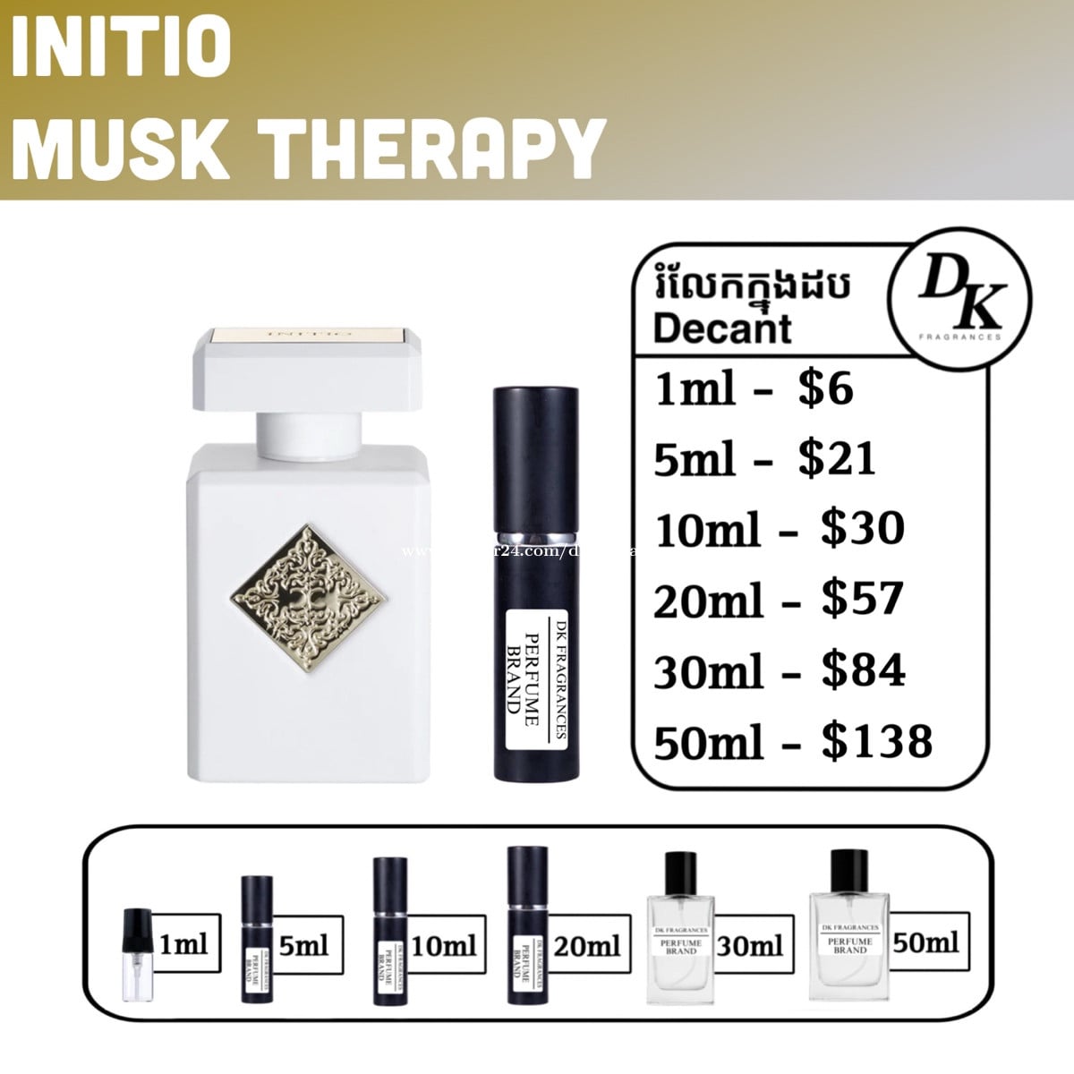Initio musk therapy 90ml full box - $225 រំលែកក្នុងកូនដប/Decant in testing bottles: 1ml, 5ml, 10ml, 20ml, 30ml, 50ml. DK Fragrances គឺធានាលោកអ្នកជាមួយនឹងឥវ៉ាន់សុទ្ធ original 100%។ ជួញដូរដោយក្ដីស្មោះត្រង់។ ខាងខ្ញុំលក់ជា Full box (ដបធំ) និងរំលែកពី ដបធំ ចូលកូនដបសម្រាប់អ្នកចង់តេស្តក្លិន។ មិចបានតម្លៃធូរជាងក្នុងហាង? ដោយសារតែឥវ៉ាន់ ខាងខ្ញុំយកស្តុកចូលច្រើនៗ បានតម្លៃល្អហើយក៏ឲ្យអ្នកទិញបានតម្លៃល្អដូចគ្នា។ ទំនាក់ទំនងតាម Telegram: 011841xxxClick To Call Telegram channel: https://t.me/dkfragrancess ពត៌មានបន្ថែមអាចឆែកគេហទំព័រយើងខ្ញុំ: https://shoplinks.to/dkfragrances Note: DK Fragrances is an online-based original perfume discounter in Phnom Penh, Cambodia (Est. 2024). We sell perfumes as in Full bottle (the original bottle), and decants (original perfume liquid extracted from big bottle and transferred to vials for testing purposes). We’ve executed thousands of successful sales—check out our Instagram to see real reviews and feedback from customers. Contact us on Telegram, or visit our website. Telegram channel: https://t.me/dkfragrancess Our website: https://shoplinks.to/dkfragrances FAQ (frequently asked questions) What is a tester box? A: It’s a simple version of a full box, different from what you see at the store. It usually comes in a plain white or cardboard box and is mainly used by perfume stores as a ‘tester’—that’s where the name comes from. However, there is no difference from any other original perfume; the juice is the same. What is a decant? A: A decant refers to a small testing vial or bottle. When customers want to try a perfume, we also sell it as a ‘decant’—from 1ml up to 50ml. We extract the juice from the original bottle using a syringe and transfer it into our own premium decant bottles. Decants are perfect for customers who want to test a fragrance without buying a full-size bottle.