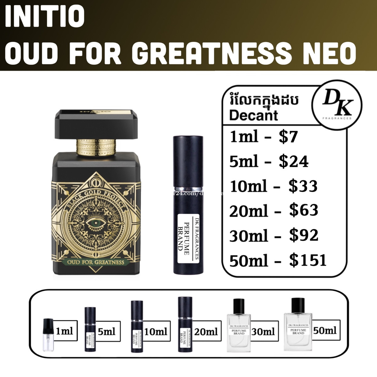 initio oud for greatness neo 90ml full box - $285 រំលែកក្នុងកូនដប/Decant in testing bottles: 1ml, 5ml, 10ml, 20ml, 30ml, 50ml. DK Fragrances គឺធានាលោកអ្នកជាមួយនឹងឥវ៉ាន់សុទ្ធ original 100%។ ជួញដូរដោយក្ដីស្មោះត្រង់។ ខាងខ្ញុំលក់ជា Full box (ដបធំ) និងរំលែកពី ដបធំ ចូលកូនដបសម្រាប់អ្នកចង់តេស្តក្លិន។ មិចបានតម្លៃធូរជាងក្នុងហាង? ដោយសារតែឥវ៉ាន់ ខាងខ្ញុំយកស្តុកចូលច្រើនៗ បានតម្លៃល្អហើយក៏ឲ្យអ្នកទិញបានតម្លៃល្អដូចគ្នា។ ទំនាក់ទំនងតាម Telegram: 011841xxxClick To Call Telegram channel: https://t.me/dkfragrancess ពត៌មានបន្ថែមអាចឆែកគេហទំព័រយើងខ្ញុំ: https://shoplinks.to/dkfragrances Note: DK Fragrances is an online-based original perfume discounter in Phnom Penh, Cambodia (Est. 2024). We sell perfumes as in Full bottle (the original bottle), and decants (original perfume liquid extracted from big bottle and transferred to vials for testing purposes). We’ve executed thousands of successful sales—check out our Instagram to see real reviews and feedback from customers. Contact us on Telegram, or visit our website. Telegram channel: https://t.me/dkfragrancess Our website: https://shoplinks.to/dkfragrances FAQ (frequently asked questions) What is a tester box? A: It’s a simple version of a full box, different from what you see at the store. It usually comes in a plain white or cardboard box and is mainly used by perfume stores as a ‘tester’—that’s where the name comes from. However, there is no difference from any other original perfume; the juice is the same. What is a decant? A: A decant refers to a small testing vial or bottle. When customers want to try a perfume, we also sell it as a ‘decant’—from 1ml up to 50ml. We extract the juice from the original bottle using a syringe and transfer it into our own premium decant bottles. Decants are perfect for customers who want to test a fragrance without buying a full-size bottle.