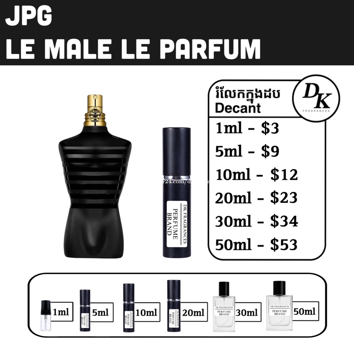JPG le male le parfum 125ml full box $105 125ml tester box $95 200ml full box $145 រំលែកក្នុងកូនដប/Decant in testing bottles: 1ml, 5ml, 10ml, 20ml, 30ml, 50ml. DK Fragrances គឺធានាលោកអ្នកជាមួយនឹងឥវ៉ាន់សុទ្ធ original 100%។ ជួញដូរដោយក្ដីស្មោះត្រង់។ ខាងខ្ញុំលក់ជា Full box (ដបធំ) និងរំលែកពី ដបធំ ចូលកូនដបសម្រាប់អ្នកចង់តេស្តក្លិន។ មិចបានតម្លៃធូរជាងក្នុងហាង? ដោយសារតែឥវ៉ាន់ ខាងខ្ញុំយកស្តុកចូលច្រើនៗ បានតម្លៃល្អហើយក៏ឲ្យអ្នកទិញបានតម្លៃល្អដូចគ្នា។ ទំនាក់ទំនងតាម Telegram: 011841xxxClick To Call Telegram channel: https://t.me/dkfragrancess ពត៌មានបន្ថែមអាចឆែកគេហទំព័រយើងខ្ញុំ: https://shoplinks.to/dkfragrances Note: DK Fragrances is an online-based original perfume discounter in Phnom Penh, Cambodia (Est. 2024). We sell perfumes as in Full bottle (the original bottle), and decants (original perfume liquid extracted from big bottle and transferred to vials for testing purposes). We’ve executed thousands of successful sales—check out our Instagram to see real reviews and feedback from customers. Contact us on Telegram, or visit our website. Telegram channel: https://t.me/dkfragrancess Our website: https://shoplinks.to/dkfragrances FAQ (frequently asked questions) What is a tester box? A: It’s a simple version of a full box, different from what you see at the store. It usually comes in a plain white or cardboard box and is mainly used by perfume stores as a ‘tester’—that’s where the name comes from. However, there is no difference from any other original perfume; the juice is the same. What is a decant? A: A decant refers to a small testing vial or bottle. When customers want to try a perfume, we also sell it as a ‘decant’—from 1ml up to 50ml. We extract the juice from the original bottle using a syringe and transfer it into our own premium decant bottles. Decants are perfect for customers who want to test a fragrance without buying a full-size bottle.