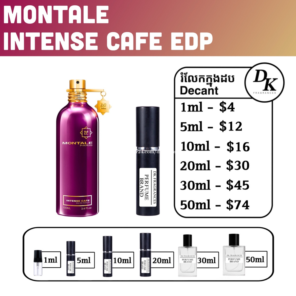 Montale intense cafe 100ml full box - $85 រំលែកក្នុងកូនដប/Decant in testing bottles: 1ml, 5ml, 10ml, 20ml, 30ml, 50ml. DK Fragrances គឺធានាលោកអ្នកជាមួយនឹងឥវ៉ាន់សុទ្ធ original 100%។ ជួញដូរដោយក្ដីស្មោះត្រង់។ ខាងខ្ញុំលក់ជា Full box (ដបធំ) និងរំលែកពី ដបធំ ចូលកូនដបសម្រាប់អ្នកចង់តេស្តក្លិន។ មិចបានតម្លៃធូរជាងក្នុងហាង? ដោយសារតែឥវ៉ាន់ ខាងខ្ញុំយកស្តុកចូលច្រើនៗ បានតម្លៃល្អហើយក៏ឲ្យអ្នកទិញបានតម្លៃល្អដូចគ្នា។ ទំនាក់ទំនងតាម Telegram: 011841xxxClick To Call Telegram channel: https://t.me/dkfragrancess ពត៌មានបន្ថែមអាចឆែកគេហទំព័រយើងខ្ញុំ: https://shoplinks.to/dkfragrances Note: DK Fragrances is an online-based original perfume discounter in Phnom Penh, Cambodia (Est. 2024). We sell perfumes as in Full bottle (the original bottle), and decants (original perfume liquid extracted from big bottle and transferred to vials for testing purposes). We’ve executed thousands of successful sales—check out our Instagram to see real reviews and feedback from customers. Contact us on Telegram, or visit our website. Telegram channel: https://t.me/dkfragrancess Our website: https://shoplinks.to/dkfragrances FAQ (frequently asked questions) What is a tester box? A: It’s a simple version of a full box, different from what you see at the store. It usually comes in a plain white or cardboard box and is mainly used by perfume stores as a ‘tester’—that’s where the name comes from. However, there is no difference from any other original perfume; the juice is the same. What is a decant? A: A decant refers to a small testing vial or bottle. When customers want to try a perfume, we also sell it as a ‘decant’—from 1ml up to 50ml. We extract the juice from the original bottle using a syringe and transfer it into our own premium decant bottles. Decants are perfect for customers who want to test a fragrance without buying a full-size bottle.