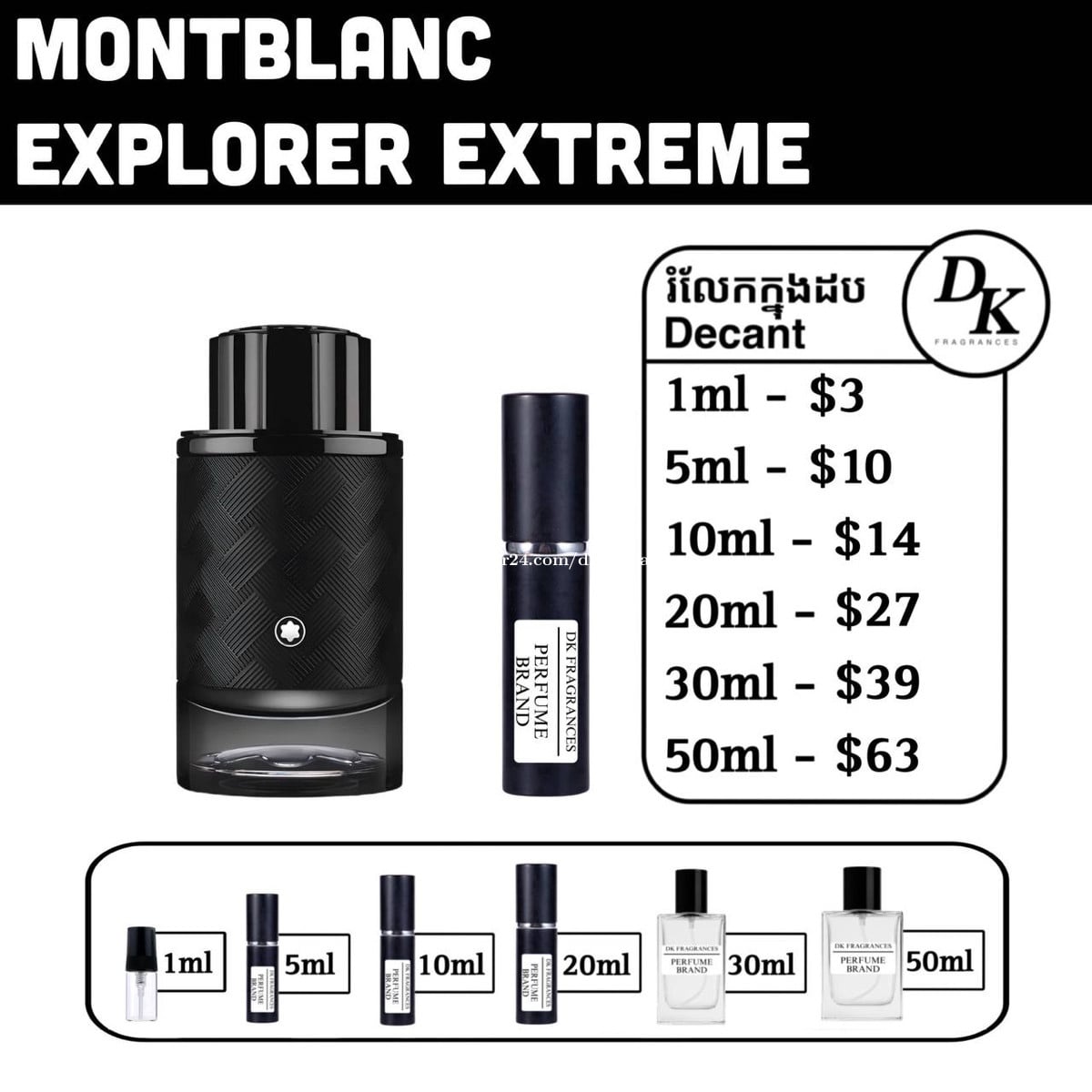 Montblanc explorer extreme 100ml full box $89 រំលែកក្នុងកូនដប/Decant in testing bottles: 1ml, 5ml, 10ml, 20ml, 30ml, 50ml. DK Fragrances គឺធានាលោកអ្នកជាមួយនឹងឥវ៉ាន់សុទ្ធ original 100%។ ជួញដូរដោយក្ដីស្មោះត្រង់។ ខាងខ្ញុំលក់ជា Full box (ដបធំ) និងរំលែកពី ដបធំ ចូលកូនដបសម្រាប់អ្នកចង់តេស្តក្លិន។ មិចបានតម្លៃធូរជាងក្នុងហាង? ដោយសារតែឥវ៉ាន់ ខាងខ្ញុំយកស្តុកចូលច្រើនៗ បានតម្លៃល្អហើយក៏ឲ្យអ្នកទិញបានតម្លៃល្អដូចគ្នា។ ទំនាក់ទំនងតាម Telegram: 011841xxxClick To Call Telegram channel: https://t.me/dkfragrancess ពត៌មានបន្ថែមអាចឆែកគេហទំព័រយើងខ្ញុំ: https://shoplinks.to/dkfragrances Note: DK Fragrances is an online-based original perfume discounter in Phnom Penh, Cambodia (Est. 2024). We sell perfumes as in Full bottle (the original bottle), and decants (original perfume liquid extracted from big bottle and transferred to vials for testing purposes). We’ve executed thousands of successful sales—check out our Instagram to see real reviews and feedback from customers. Contact us on Telegram, or visit our website. Telegram channel: https://t.me/dkfragrancess Our website: https://shoplinks.to/dkfragrances