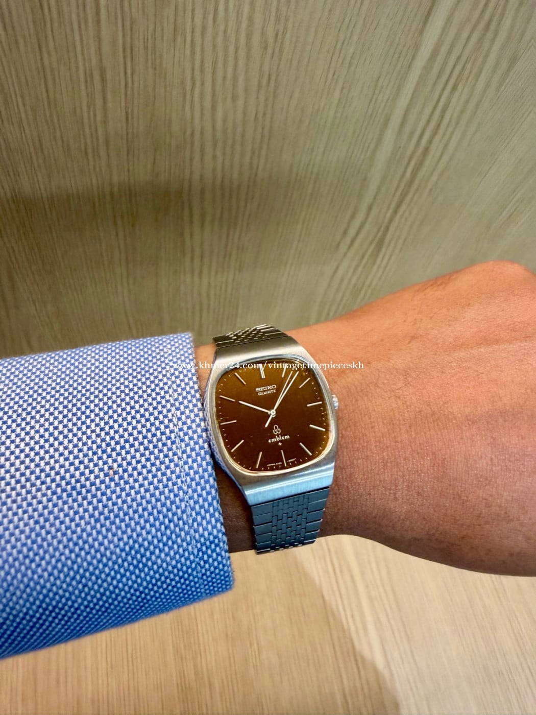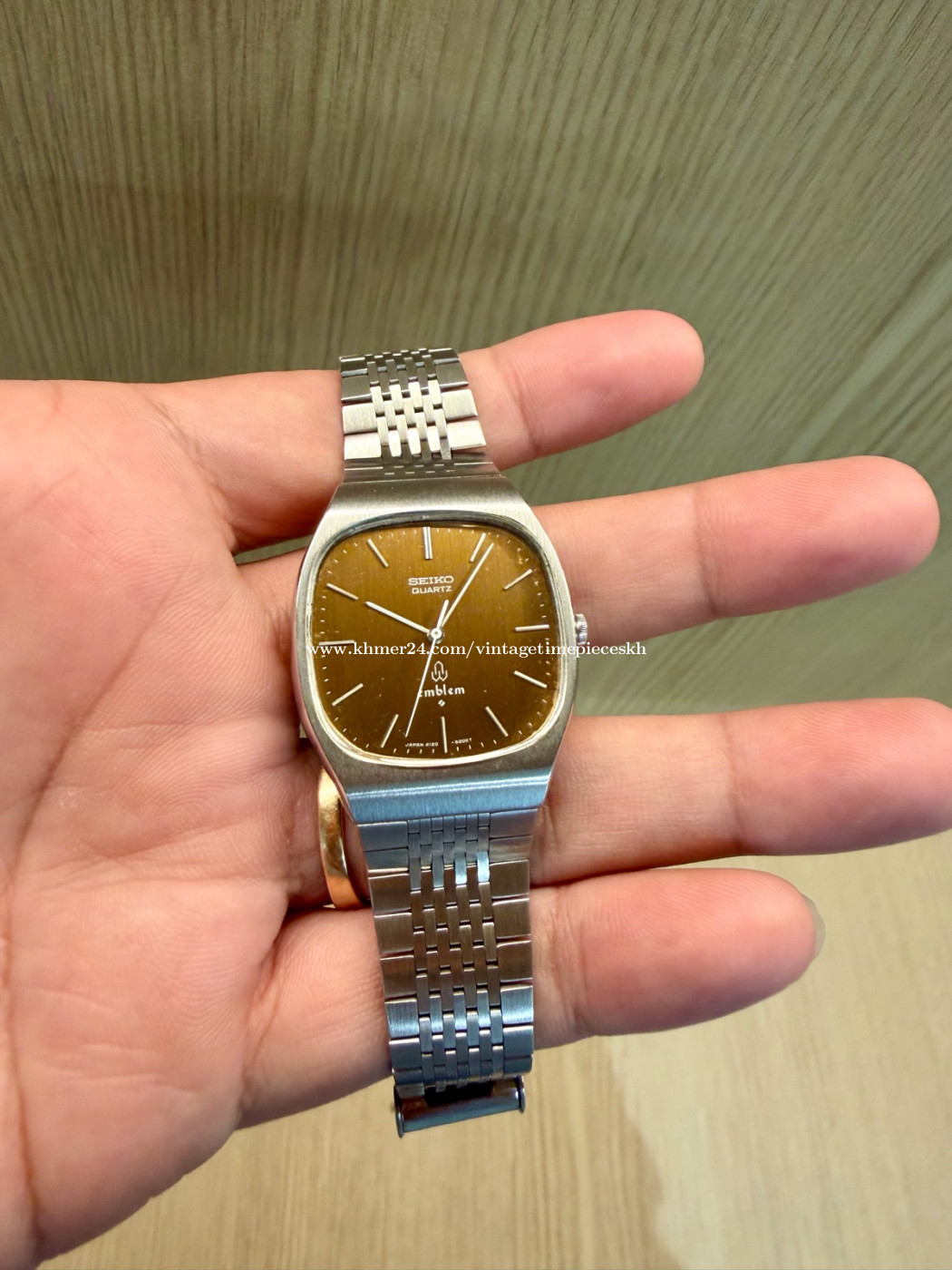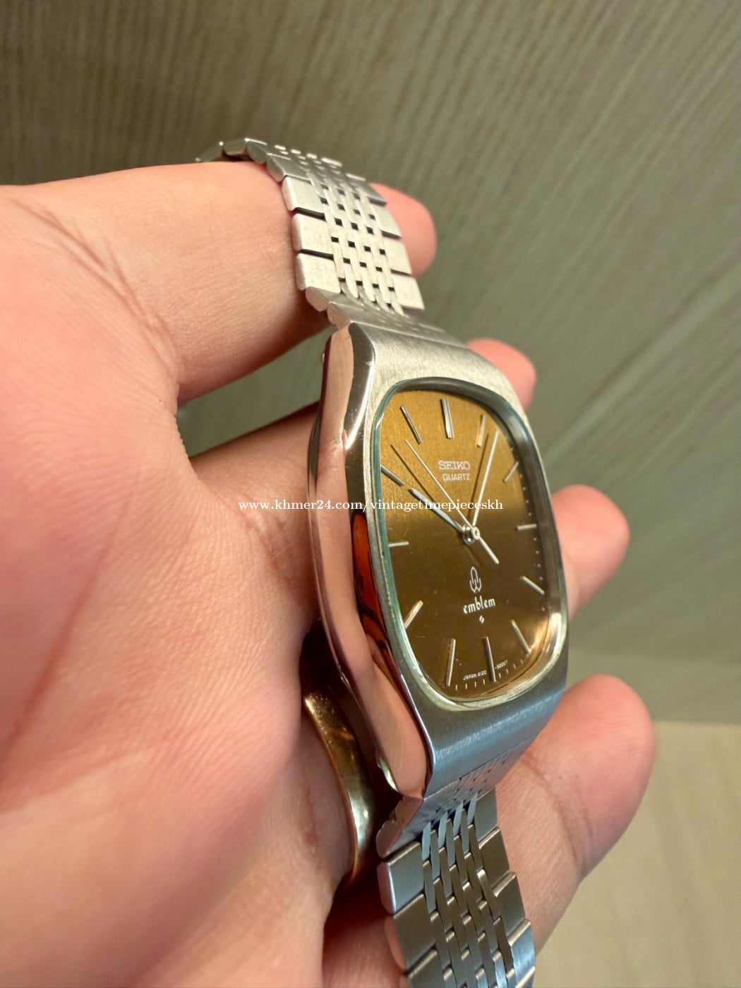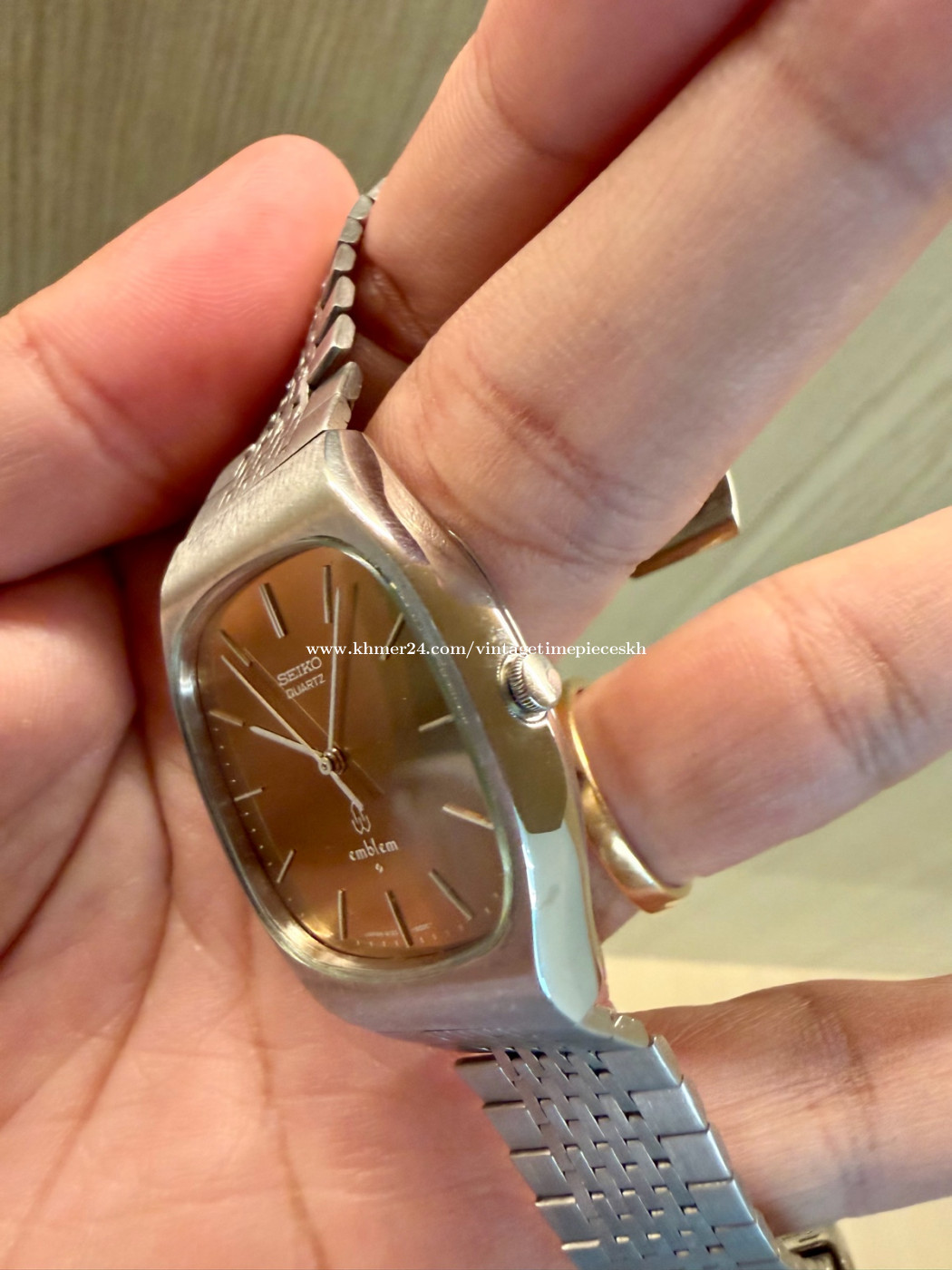 🔥 ត្រកូល emblem មុខជ្រុង មកហើយ នាឡិកា Original Rarest Vintage SEIKO Tank emblem Brushed Brown Dial JDM ម៉ូដែលនេះផ្ទៃពណ៌ត្នោតចាស់ ជម្រាលពណ៌តាមពន្លឺ ជំនាន់ ឆ្នាំ 1975 ដំណើរការដោយថ្ម ជាមួយនឹងម៉ាសុីន Quartz Caliber 4120 ដ៏ស្តើង និងមានភាពជាក់លាក់ខ្ពស់។ ចំនុចពិសេសនាឡិកានេះគឺ បែបបុរាណ (vintage) ហើយម៉ូដបែប dress watch ដ៏ប្រណិត របស់ត្រកូល Emblem ម៉ាក់ Seiko ដែលមិនសូវត្រូវបានគេឃើញច្រើននៅលើទីផ្សារនោះទេ។ នាឡិកានេះត្រូវបានផលិត នៅឯរោងចក្រ Suwa ក្នុងប្រទេសជប៉ុន។ នៅសំនុំដើម ស្អាតស្រាប់ មិនបាច់សម្អាតបន្ថែមទេ។ នាឡិកានេះនៅក្រៅស្អាតណាស់បងប្អូន។ 💥តម្លៃ Price: 160$ Contact me for more information. Telegram: 078639xxxClick To Call Check out more content: Facebook: https://www.facebook.com/profile.php?id=61572795407489 Instagram: https://www.instagram.com/vintage_timepieces_kh?igsh=MWtmb21nbGVoMDRvNg== Khmer24: https://www.khmer24.com/vintagetimepieceskh Tiktok: https://www.tiktok.com/@vintage.timepiecekh168?_t=ZS-8vlo6DXZ7sA&_r=1 ⌚ For Sale: Original Rarest Vintage SEIKO Tank emblem Brushed Brown Dial JDM 4120, dial 32x38mm, Pre-owned. Machine working well. 📌 Model: Original Rarest Vintage SEIKO Tank emblem Brushed Brown Dial JDM 🔘 Band Material: Stainless Steel 🔘 Case Size: 32x38mm 🔘 Year Manufactured: Est 1975 🔘 Condition: Excellent vintage condition with minor signs of wear consistent with age. The watch has been well-maintained and is fully functional. The crystal is clear, and the band shows minimal wear. *ធានាលើម៉ាសុីន 1ខែ ប្រសិនមានបញ្ហាធ្វើជូនឥតគិតថ្លៃ។