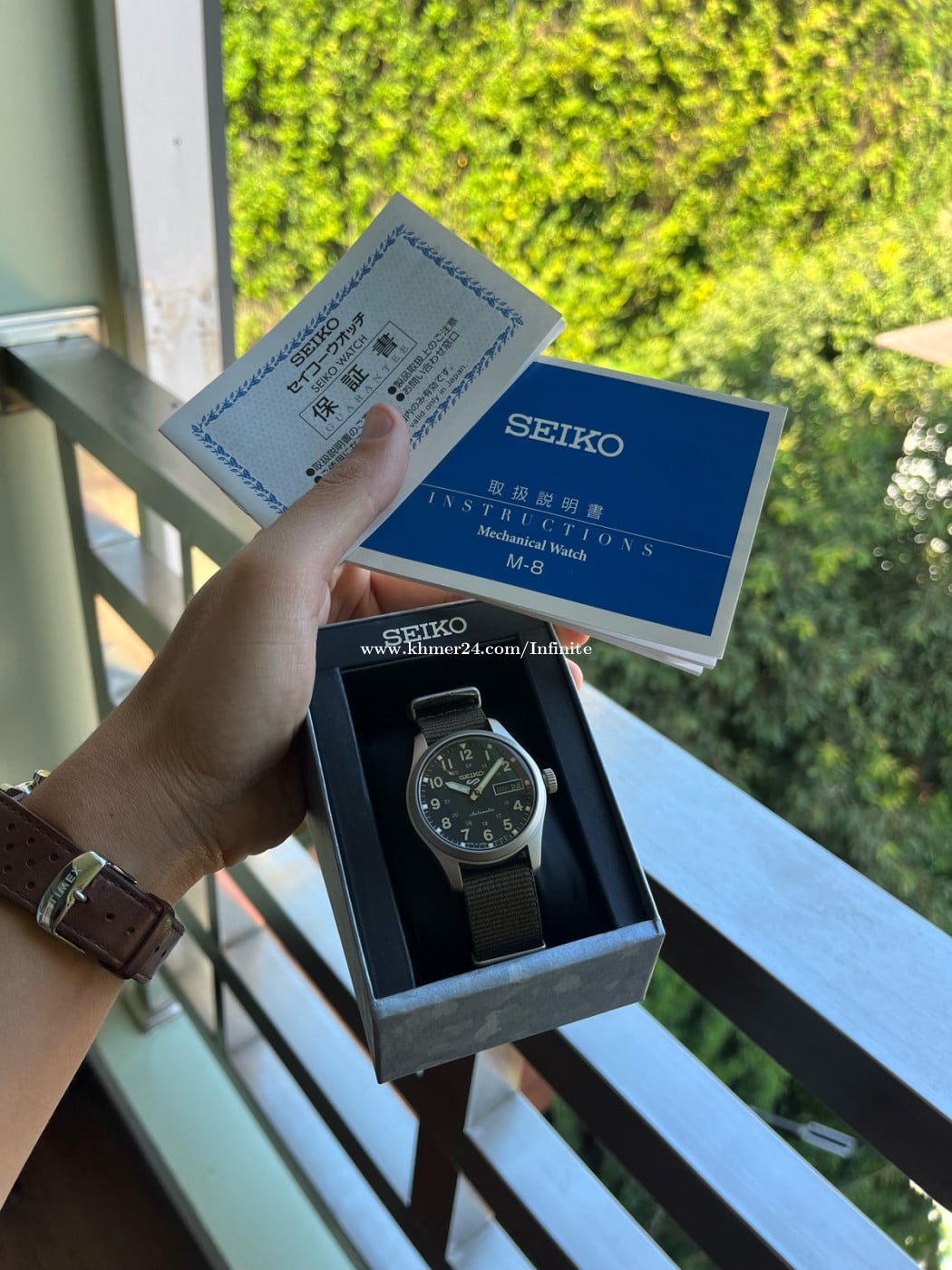 One of the best military-inspired design watch ๐ฅ Seiko 5 Sports Midfield JDM(made in Japan version) Size: 36.4mm Condition: Brand new full set Movement: Automatic Cal. 4R36 WR: 100m/10bar Crystal: Mineral Price: $3xx Warranty: 1 year on movement/ infinite warranty on authenticity FB page: Infinite Timepiece ๐ Catalogue: https://t.me/+m18HSNqV2NlhOTFl โ๏ธ Contact: 0966850xxxClick To Call/ 093881xxxClick To Call(telegram/whatsapp)