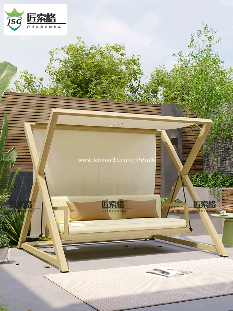 Outdoor swing in the courtyard, popular outdoor garden, balcony swing chair real wood $967.00 100 % new and packed goods in phnom penh, but can be sent to every location in Cambodia