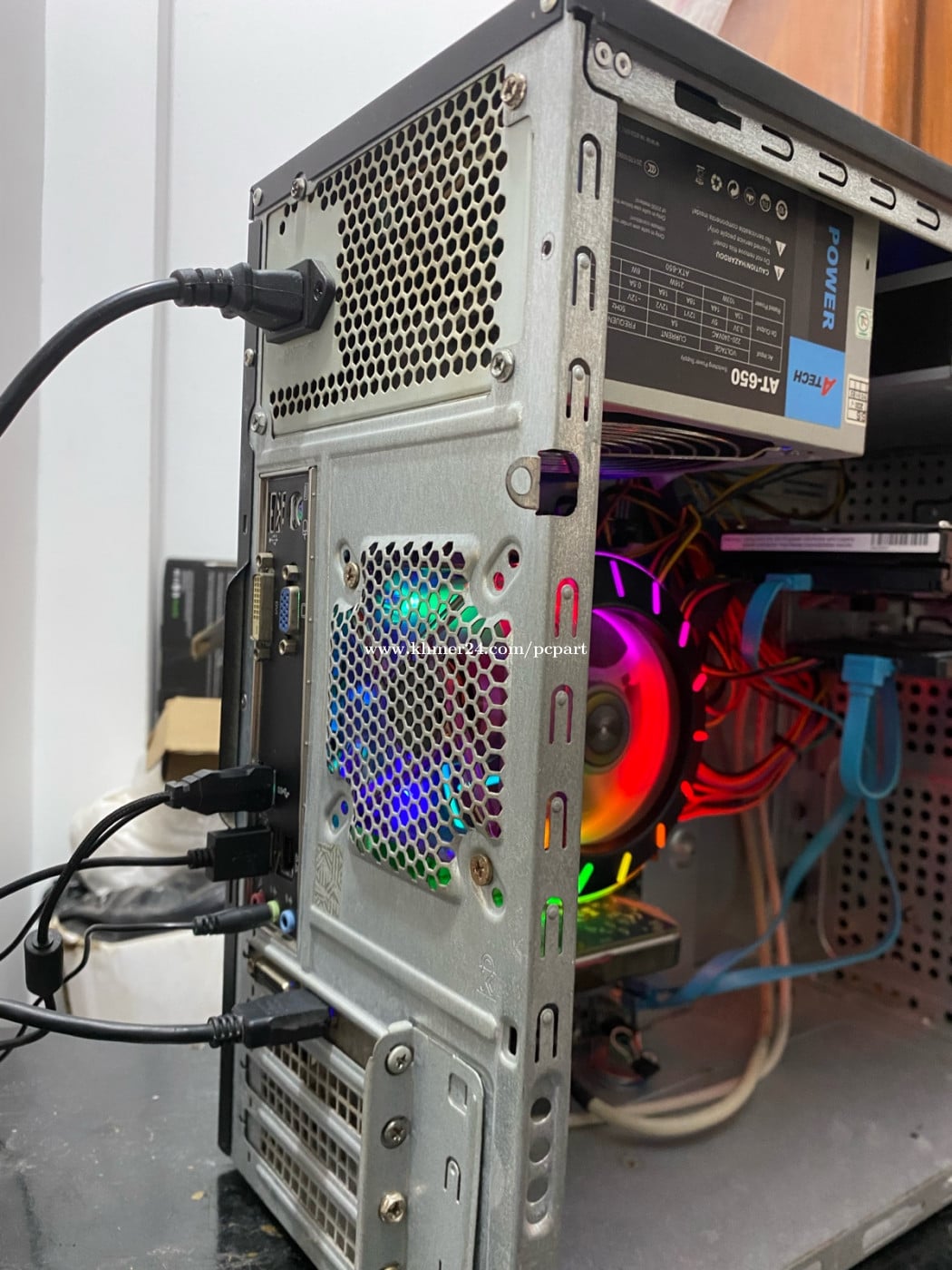 CPU : Intel Core i5-2400 (3.00GHz) MB : Eillte Groups B75M (2/3 Gen) RAM : KingSton DDR3 8G (1600MHz) SSD : KING SPEC 128G (Window10) HDD : DISKSTAR 500G (Drive D) PSU : A-Tech 650W (Orginal) CASE : iiYama Office FAN CPU : Great Wall RGB FAN CASE : RGB RAINBOW X1 GPU : Nvidia GT 530 2G (មាន HDMI)