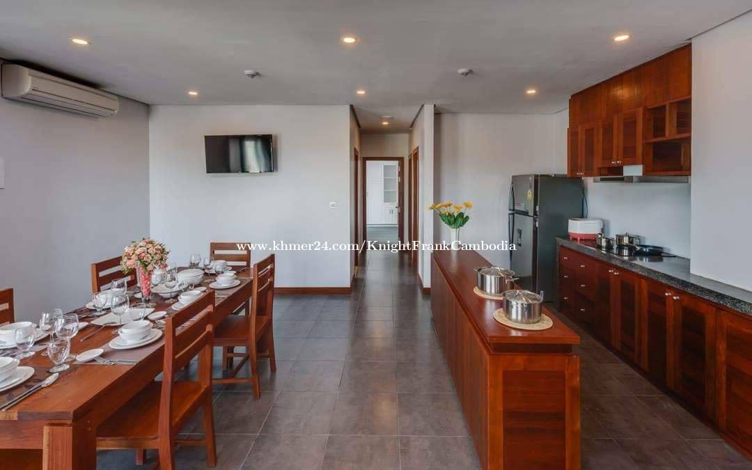 Penthouse for Lease – BKK1 Ref: KHRA163 4 bedrooms | 4 bathrooms | 185 sqm | 14th floor Rent: USD 3,500/month Fully furnished. Cleaning twice weekly. Internet, cable TV, management fees included. Swimming pool, 24/7 security, car & motorbike parking. Utilities: USD 0.25/kWh. Knight Frank Cambodia Lin Lin T: +8559286xxxClick To Call9 | +8551586xxxClick To Call9 E: sok***************@kh.knightfrank.comClick To Sent Email #KnightFrankCambodia