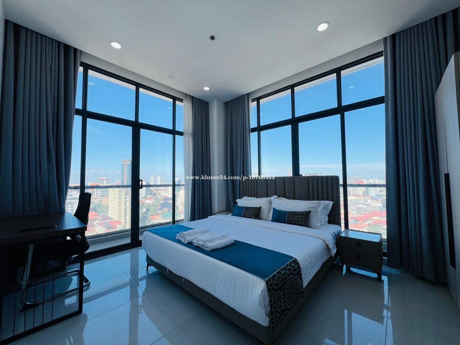 Luxury Penthouse for Rent in Toul Kork Unit Type: Penthouse with 2-bedroom unit Size: 95 Sqm Floor : 15th Spacious living room/kitchen Service inclusive: - Management: Free - Facilities: Free (Swimming pool, 24H Security) - Free Parking: Car or Motor Extra Charge: - Water Fee: $0.55/m3 - Electric Fee: $0.25/KW Dm for viewing : https://t.me/KHIM_1311