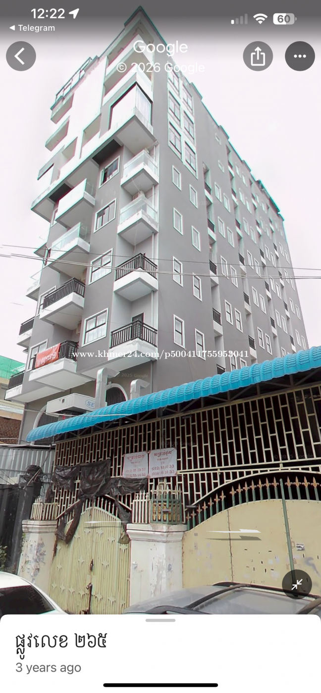 ប្រម៉ូសិន 170$ ឡើងទៅ -គ្រែ និងពូកថ្មី -ម៉ាស៊ីនត្រជាក់ថ្មី -ទូរទឹកកកថ្មី -Free wifi -Free ជណ្ដើរយន្ត -Free ចំណតម៉ូតូ -ចង្ក្រានបាយ -ទូខោអាវ -ឡាបូលាងចាន -បន្ទប់ទឹក -ម៉ាស៊ីនទឹកក្តៅ -វាំងនន -កាមេរ៉ាសុវត្ថិភាព -ចេញចូល 24 ម៉ោង នៅជិតផ្សារ សាលារៀនអន្តរជាតិ ធនាគារ មន្ទីរពេទ្យ និងផ្លូវមានចរាចរណ៍ខ្វែងខ្វាត់។ Telegram Mr. Den 097689xxxClick To Call1.0968450xxxClick To Call