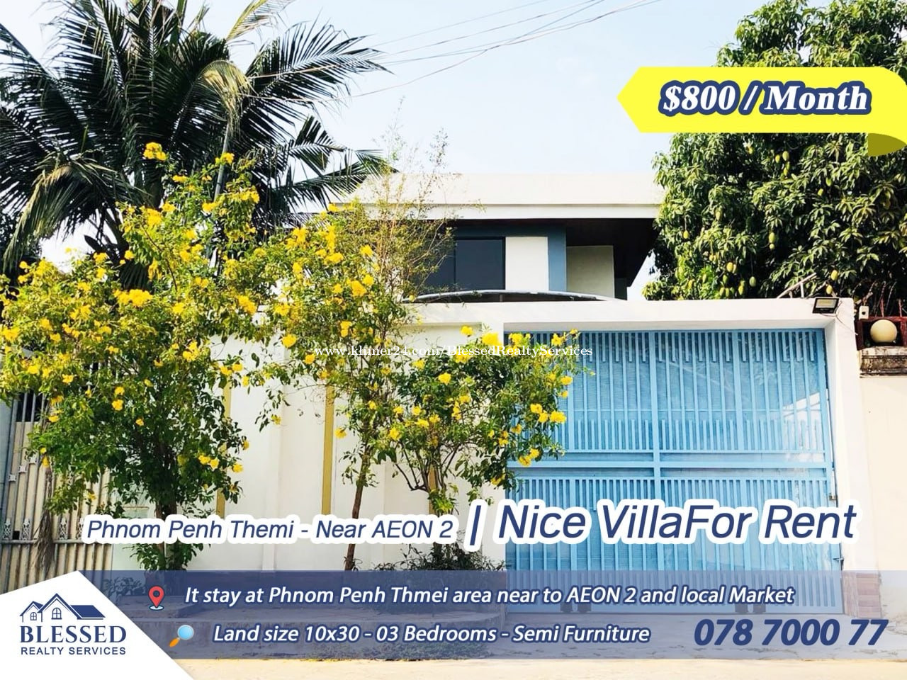 Phnom Penh Thmei-Near AEON 2๐ Villa for Rent๐ Price: $800 per month โจ 3 Bedrooms โจ 3 Bathrooms โจ Land Size: 10 x 30 โจ Some furniture โจ Quiet and peaceful location for living ้่พน Thmei ๅบ๏ผ้ ่ฟ AEON 2 ๐ ๅซๅข ๅบ็ง๐ ๐ฒ ๆ็ง๏ผ800 ็พๅ โจ 3 ้ดๅงๅฎค โจ 3 ้ดๆตดๅฎค โจ ๅๅฐ้ข็งฏ๏ผ10 x 30 โจ ้จๅๅฎถๅ ท โจ ็ฏๅขๅฎ้ใ้ๅๅฑ ไฝ ๐ Contact: 078700xxxClick To Call Telegram: https://t.me/ryansear Channel Telegram: https://t.me/rent_blessedrealty