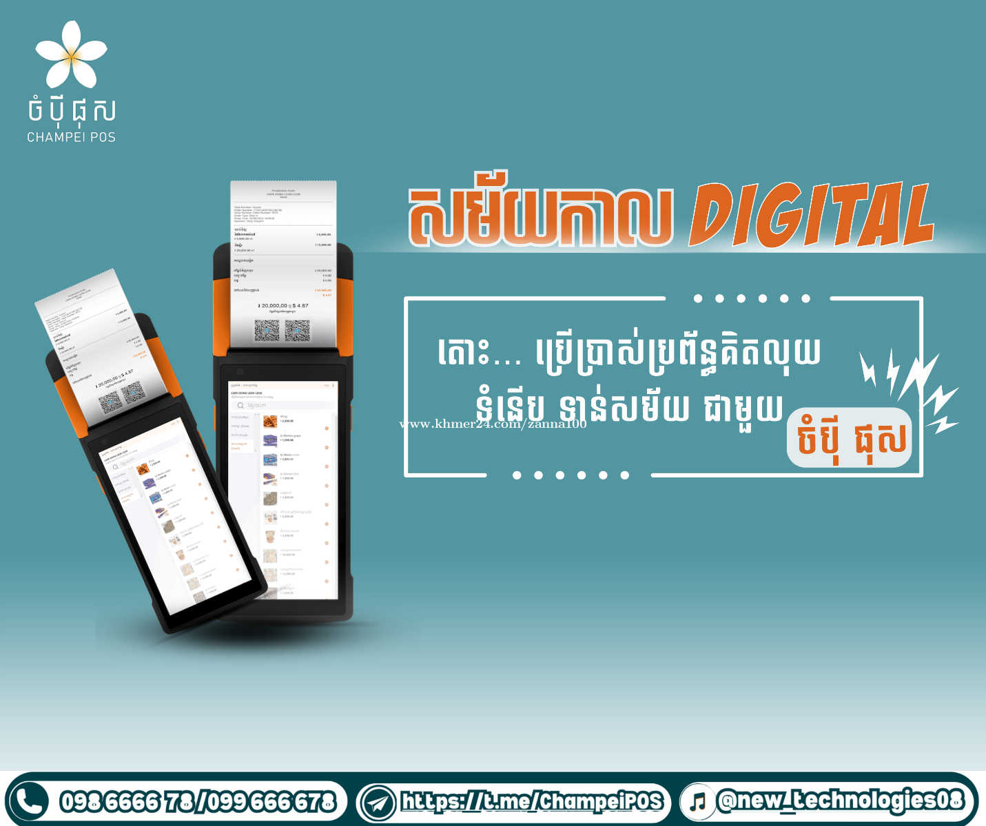 ប្រព័ន្ធគ្រប់គ្រងអាជីវកម្ម ចំបុី ផុស គឺជាជម្រើសដ៏ល្អបំផុតសម្រាប់អ្នកចង់ចាប់ផ្ដើមអាជីវកម្មមានប្រព័ន្ធគ្រប់គ្រងអាជីវកម្មចំប៉ី ផុស អ្នកនឹងទទួលបានអត្ថប្រយោជន៍ជាច្រើន៖ ✅ ទទួលបានការប្រើប្រាស់ម៉ាស៊ីន សមស្របទៅតាមប្រភេទអាជីវកម្ម ✅ ផ្តល់ការប្រើប្រាស់ពេញ ១ឆ្នាំដោយឥតគិតថ្លៃ ✅ ជួយសន្សំសំចៃ ក្នុងការចំណាយ ✅ បង្កើនអតិថិជនជូនលោកអ្នក ✅ គ្រប់គ្រងចំណូល-ចំណាយច្បាស់លាស់ ✅ ពិនិត្យរបាយការណ៍បានភ្លាមៗ ចំប៉ី ផុសមានមុខងារដ៏សម្បូរបែប និងទំនើបសម្រាប់ម្ចាស់អាជីវកម្មគ្រប់ប្រភេទ ។ ទំនាក់ទំនងមកកាន់យើងខ្ញុំឥឡូវនេះ ដើម្បីទទួលបានព័ត៌មានលម្អិត៖ ️ 098623xxxClick To Call / 099666xxxClick To Call / 0716666xxxClick To Call Telegram: https://t.me/champeipos2025 YouTube: https://www.youtube.com/channel/UCB_NnPwX5MrdiCusWrnsX1Q Tiktok: https://www.tiktok.com/@new_technologies08?_t=ZS-8ubq4gzD23U&_r=1