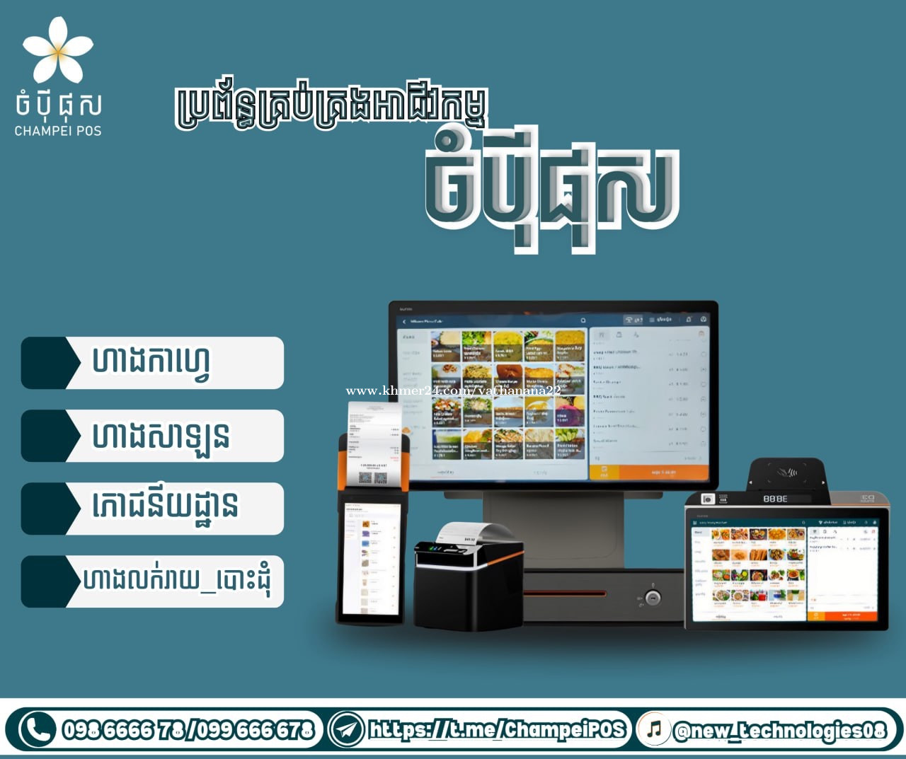 តើលោកអ្នកដឹងទេថាប្រព័ន្ធគ្រប់គ្រងការលក់ចំបុីផុស សមស្របទៅនិងប្រភេទអាជីវកម្មអ្វីខ្លះ? ប្រព័ន្ធគ្រប់គ្រងការលក់ចំបុីផុសអាចសមស្របទៅនិងប្រភេទអាជីវកម្មដូចជា៖ - ហាងកាហ្វេ - ហាងសាឡន - ភោជនីយដ្ឋាន - ហាងលក់រាយ_បោះដុំ ___________________________________________ ចង់ដឹងព័ត៌មានលម្អិត សូមទំនាក់ទំនងឬចុចលើលីងខាងក្រោមនេះ ☎️ 098666xxxClick To Call / 099666xxxClick To Call / 0716666xxxClick To Call 🔗 Telegram : https://t.me/champeipos2025 🔗 Tik Tok : https://www.tiktok.com/@new_technologies08?_t=ZS-8ubq4gzD23U&_r=1 🔗 Youtube : https://www.youtube.com/channel/UCB_NnPwX5MrdiCusWrnsX1Q