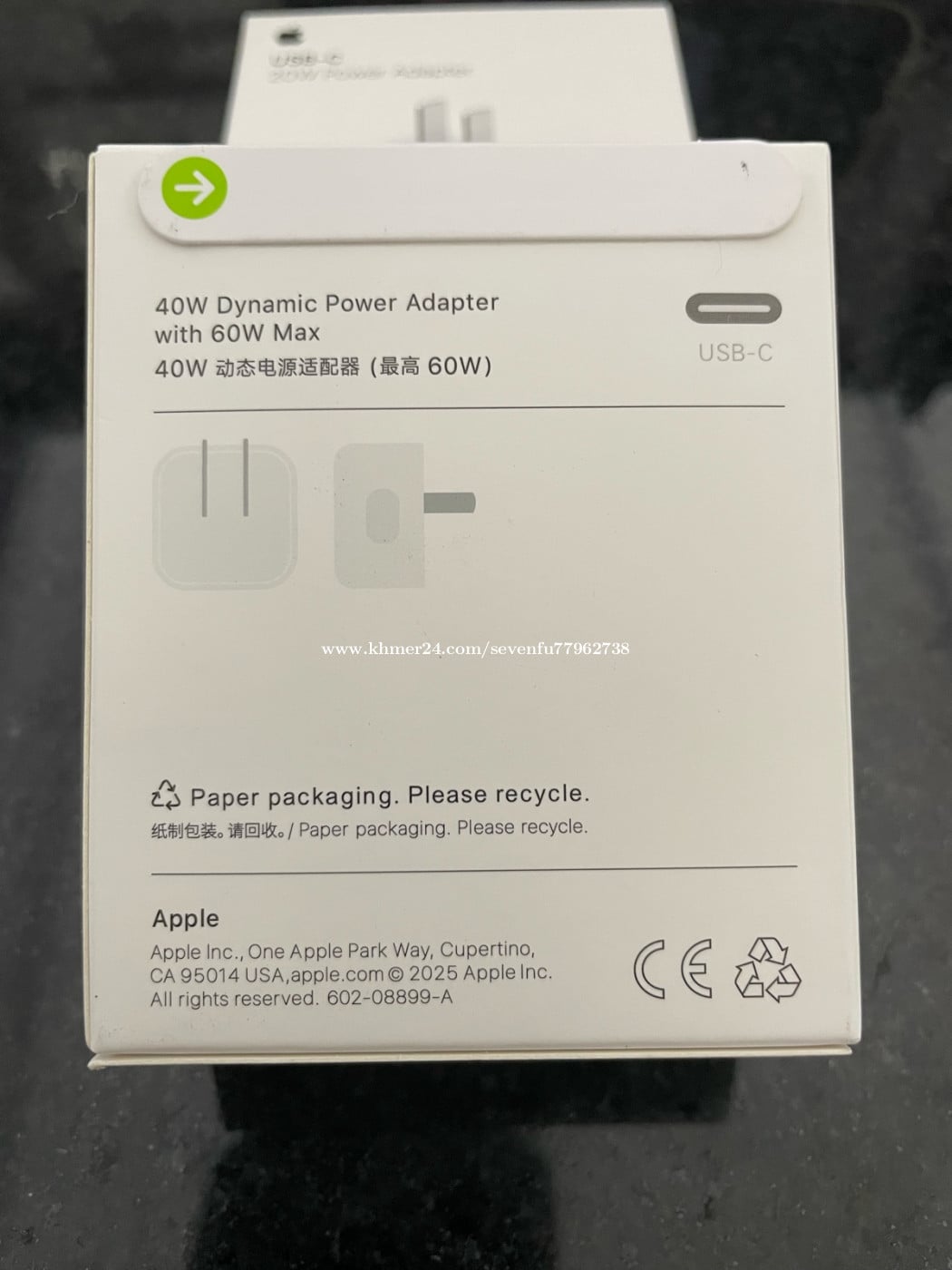 1. Power Supply and Charging • Converts household AC power into DC power suitable for electronic devices • Charges devices through a USB-C port 2. Dynamic Power Output • Rated at 40W output, with a maximum of up to 60W when supported by compatible devices and cables • Automatically adjusts the output power based on the connected device’s needs for safe and efficient charging 3. Fast Charging Support • Supports the USB-C PD (Power Delivery) fast-charging protocol • Provides fast charging for smartphones, tablets, and some laptops 4. Wide Compatibility • Compatible with USB-C devices such as: • iPhone (USB-C models) • iPad (USB-C versions) • MacBook / other lightweight laptops • Other devices that support USB-C charging Usage Notes • Must be used with a USB-C charging cable • Actual charging power depends on the device and the specifications of the charging cable used 📌 Simple Summary: Its function is to provide smart, high-power, and safe fast charging for USB-C devices.