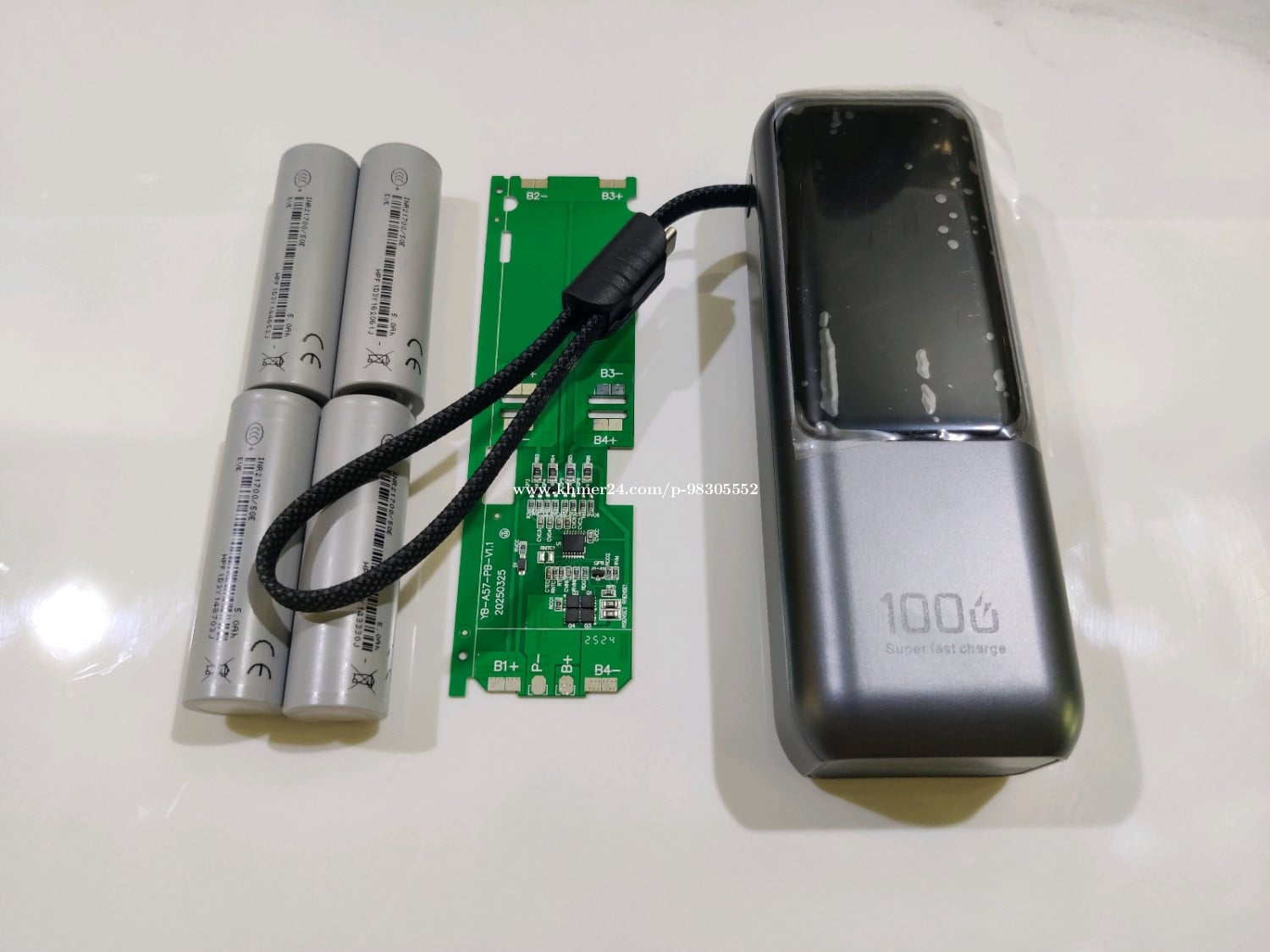 Power bank 100W 20000mAh (24$) រៀបខ្លួនឯង ប្រើថ្មលីចូម 5000mAh 4គ្រាប់ធានាពេញគ្រប់ល្អ ប្រើមួយដឹងមួយ