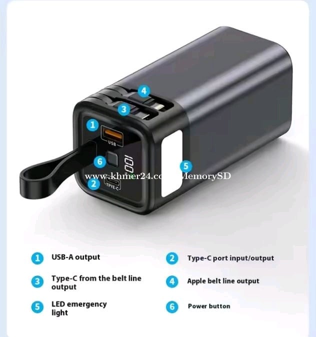 តូចតែខ្លឹម! Power Bank 4-in-1 បច្ចេកវិទ្យាថ្មលីចូម Samsung! ✅ មានខ្សែសាកជាប់ខ្លួន (iPhone & Type-C) ✅ ប្រើគ្រាប់ថ្មលីចូមស្រាលមិនភ័យប៉ោងខូច Samsung 21700 (គុណភាពលេខ១) ✅ មានអំពូលបំភ្លឺកម្រិតពន្លឺខ្លាំង ✅ រូបរាងតូច ងាយស្រួលកាន់តាមខ្លួន 💵 តម្លៃពិសេសសម្រាប់ថ្ងៃនេះ! (ដាក់តម្លៃរបស់អ្នកនៅទីនេះ) 069464xxxClick To Call