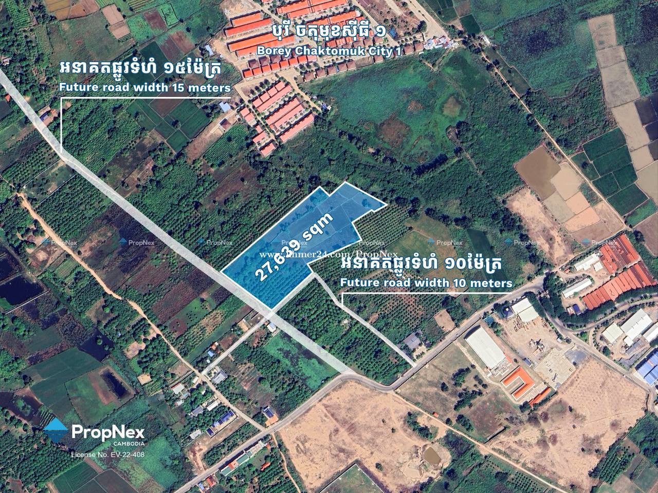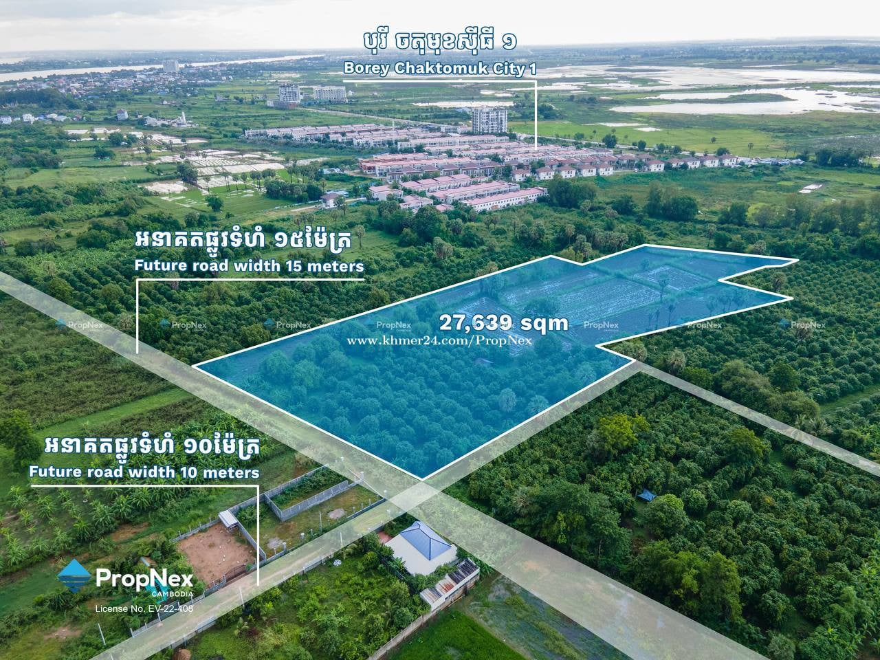 ដីកែងនៅអរិយក្សត្រ – តម្លៃត្រឹមតែ $250 / sqm ជិតគម្រោងស្ពានថ្មី | ឱកាសទិញក្រោមតម្លៃទីផ្សារ ចំណុចពិសេស៖ • ដីកែងមានផ្លូវ២ខាង (ផ្លូវអនាគតទំហំ 15ម និង 10ម) • ជិតគម្រោងស្ពានថ្មី ដែលនឹងជួយបង្កើនតម្លៃអចលនទ្រព្យ • ឱកាសល្អសម្រាប់ទិញទុកវិនិយោគក្នុងស្ថានភាពទីផ្សារបច្ចុប្បន្ន 📐 ទំហំដី៖ 2.7 ហិកតា (27,000 sqm) 📄 ប្លង់៖ LMAP Hard Title 💰 តម្លៃលក់៖ USD 250 / sqm 📍 ទីតាំង៖ ស្វាយជ្រុំ, ក្រុងអរិយក្សត្រ • ចម្ងាយត្រឹម 2.4 គម ពីកំពង់ចម្លងបច្ចុប្បន្ន • ជិតស្ពានថ្មីអនាគត ⸻ Prime Corner Land in Arey Khsat - Only $250 / sqm Near Future Bridge | Below Market Opportunity Key Highlights: • Corner land with dual road access (15m & 10m future roads) • Close to the upcoming bridge connection • Ideal for land banking or development 📐 Land Size: 2.7 hectares (27,000 sqm) 📄 Title: LMAP Hard Title 💰 Price: USD 250 / sqm 📍 Location: Svay Chrum, Arey Khsat City • 2.4 km from current ferry • Near future bridge 📞 Contact: PropNex Cambodia 📱 +8558977xxxClick To Call8 | Telegram: t.me/Thida_ann 📧 thi******@propnexkh.comClick To Sent Email