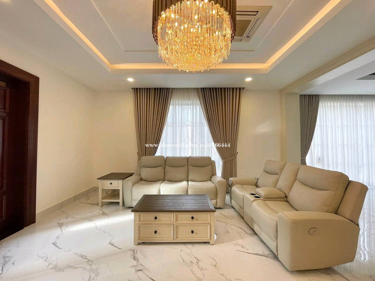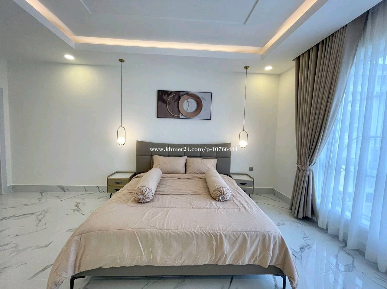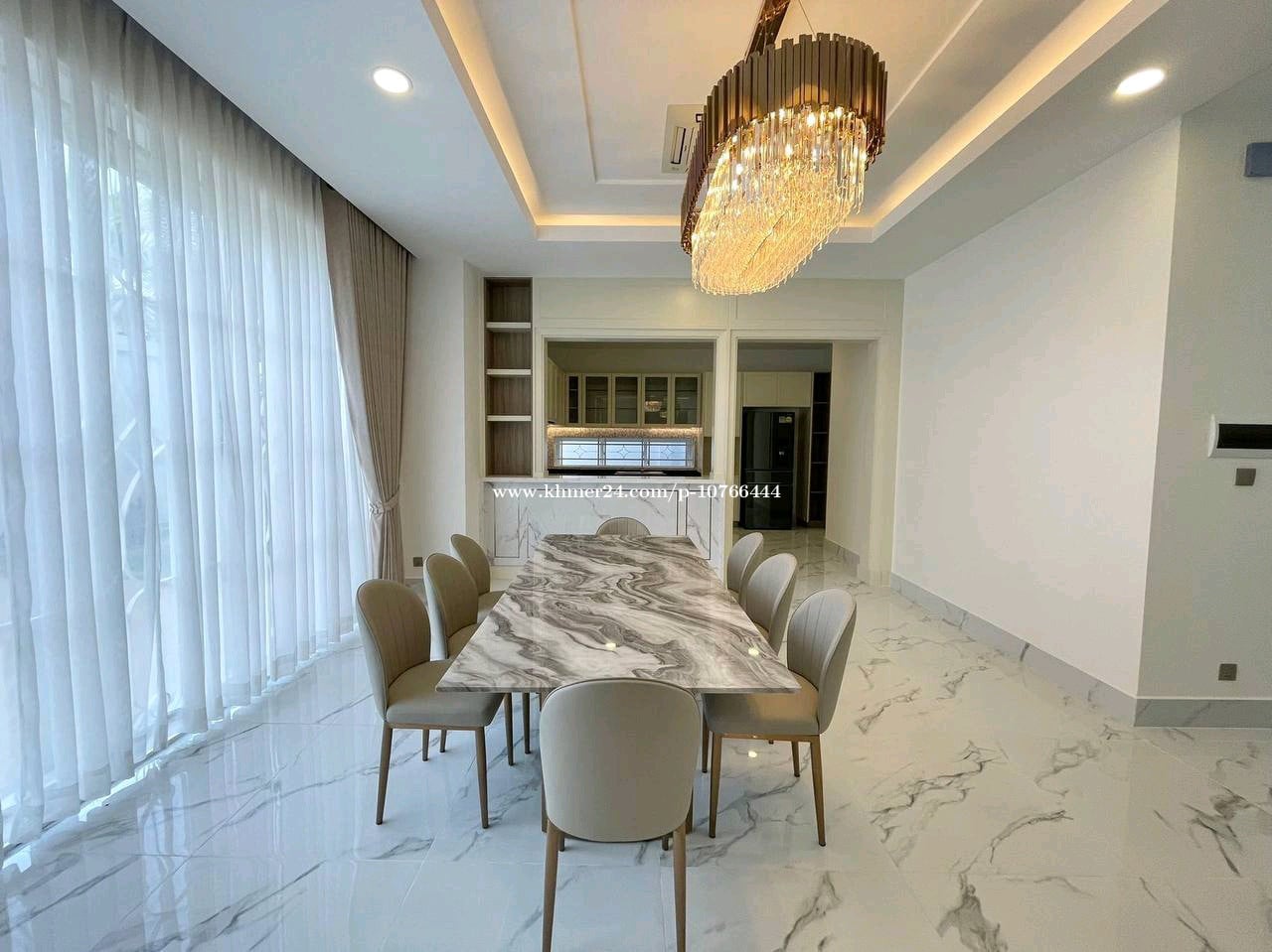 * Furniture: Fully furnished * Land size: 22 x 25m * House size: 12 x 13.2m * Floor: 3 * Bedroom: 5 * Bathroom: 6 * Living room / kitchen * Location Information: - Nearby attractions: Southbridge International School, Garden, kids play ground, PH Euro park, Eco Park, The Platinum Sport Center,General department of identification building, The park community mall, PTT Gas station. It takes about 2.5km from Chbar Ampov bridge and market and 5mins to Koh Norea Bridge and Koh Pich. Panha Chan