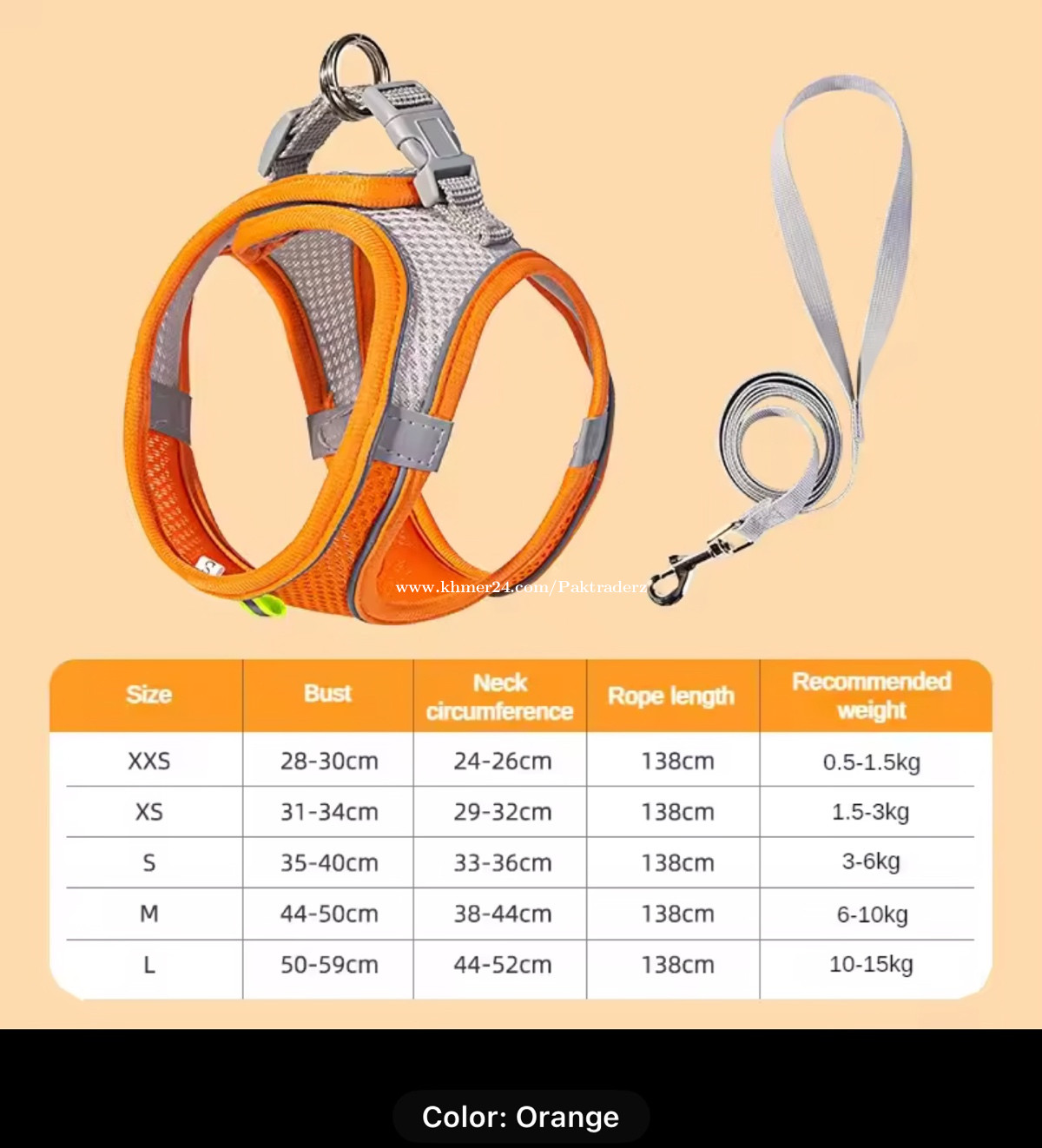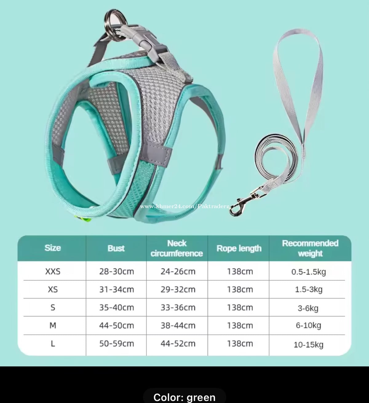 Specifications โบ All colors available ๐ Lifestage High-concerned... Is Smart Device All stages None No 1. Soft and Comfort Dog Harness with Leash - Soft breathable texture with no hard edges or buckles to irritate skin, reduce tugging and pulling on your pet's neck and make your pet walks comfortable. 2. Reflective Dog Cat Harness - Sealed with Reflective Piping, generate excellent reflective effect, enhance the visibility of your dog in dark, keep your dog safe. Notice: 1. Due to the light and screen difference, the item's color may be slightly different from the pictures. Please understand. Make sure you don't mind before you bid. 2. Please allow2-3cm differences due to manual measurement. Packing: 1* Dog Harness Vest 1* 1.5m Leash Size: XXS neck 24-26cm chest 28-30cm XS neck 29-32cm chest 32-38cm S neck 33-36cm chest 38-44cm M neck 38-44cm chest 46-56cm L neck 44-52cm chest 51-62cm