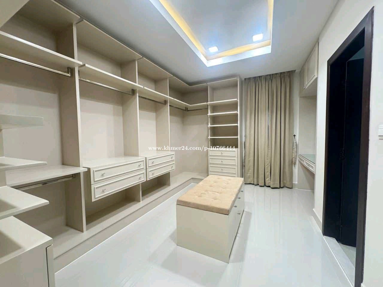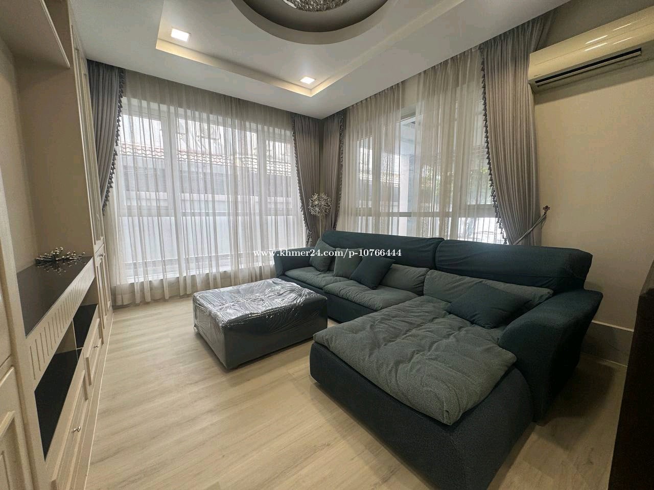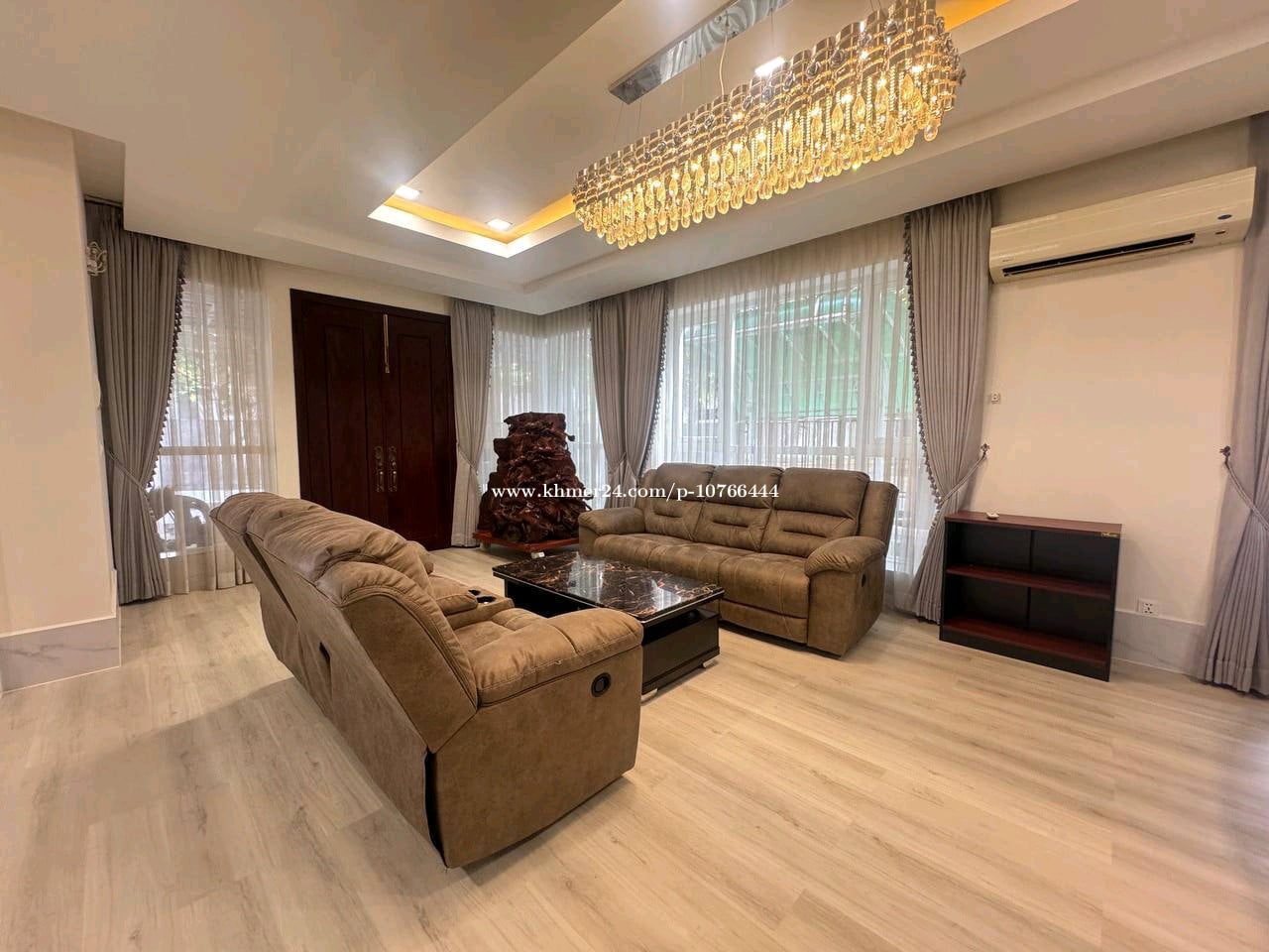 * Land size: 21 × 25m * House size: 12m × 12m * Furniture: Fully furnished * Bedroom: 6 + 1 maid room * Bathroom: 8 * Living room / kitchen * Total floors: 3 * Facing: East * Location Information: - Nearby attractions: Southbridge International School, Garden, kids play ground, PH Euro park, Eco Park, The Platinum Sport Center,General department of identification building, The park community mall, PTT Gas station. It takes about 2.5km from Chbar Ampov bridge and market and 5mins to Koh Norea Bridge and Koh Pich. Panha Chan