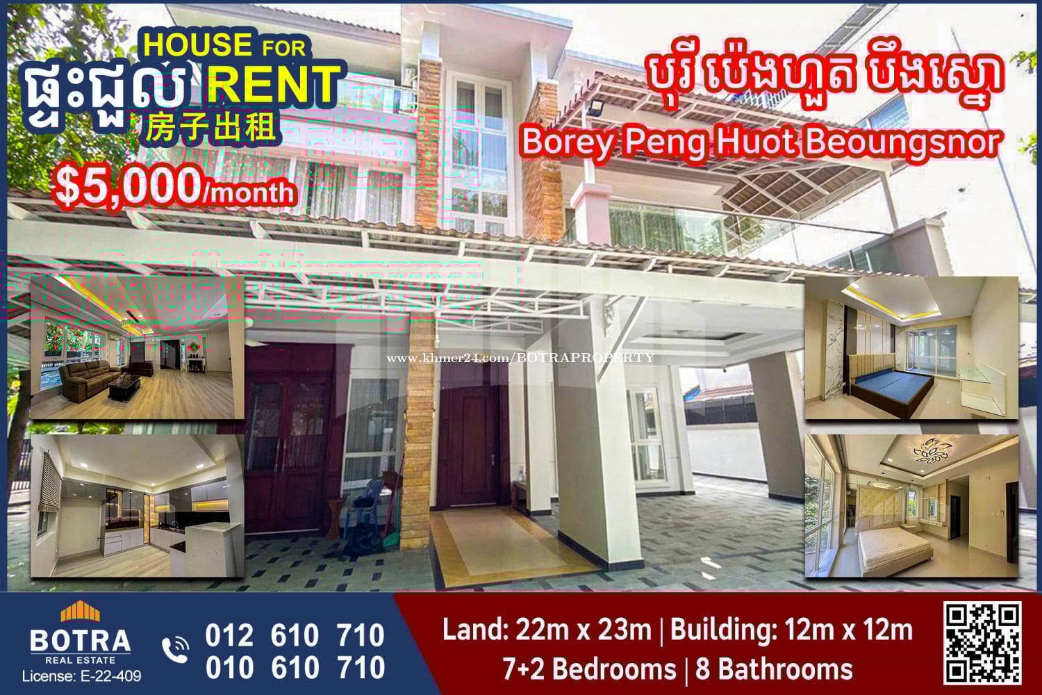 ๐ฃ Queen Villa for Rent #B1448 ๐ Borey Peng Huot Beoungsnor ๐ Price: $5,000/month โข Land size: 22m x 23m โข Villa size: 12m x 12m โข 7+2 Bedrooms | 8 Bathrooms โข Furniture โโโโโโโโโ Contact us now ๐ 012610xxxClick To Call (Cellcard) ๐ 010610xxxClick To Call (Smart) โถ๏ธ t.me/BotraRealEstate (Chat)