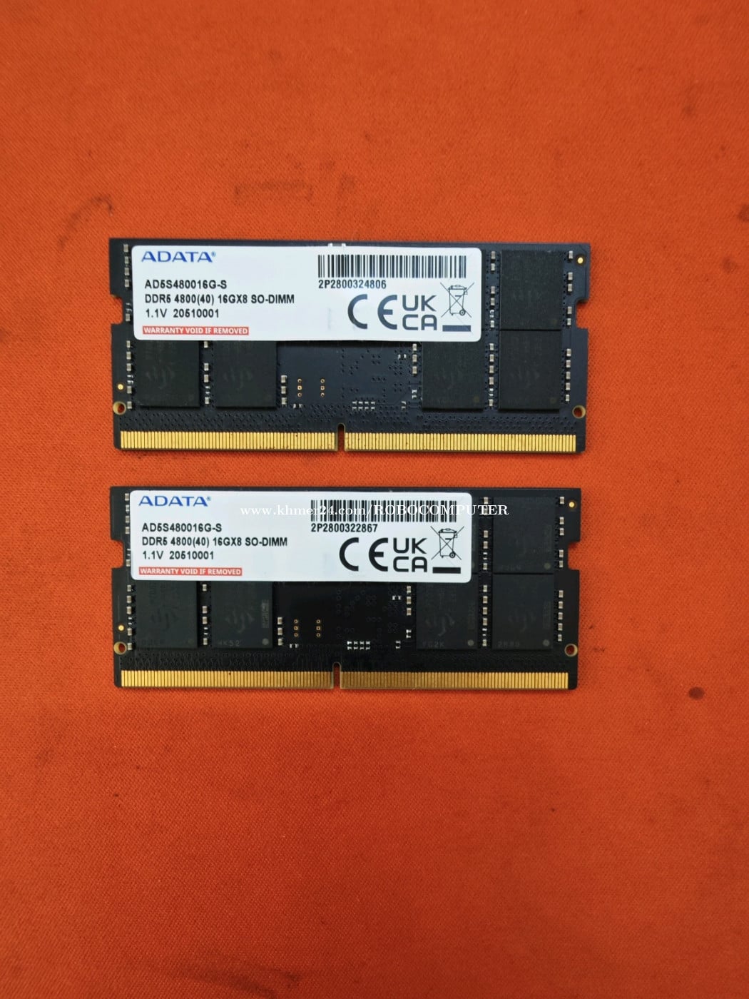 ដោះចេញពីម៉ាសុីននៅថ្មីស្អាត មានធានា ១ឆ្នាំ Ram Laptop ADATA DDR5-4800 16GB Price: 95$ Warranty: 1 year Pull out from Laptop. ----------- ROBO COMPUTER TECHNOLOGY 👉ផ្ទះលេខ 159E0, ផ្លូវ128(កម្ពុជាក្រោម) សង្កាត់មិត្តភាព ខណ្ឌ៧មករា 👉HP: 012589xxxClick To Call/ 086500xxxClick To Call 💋Telegram: t.me/ROBOKH88 (TELEGRAM: 012589xxxClick To Call) 💋ទីតាំង Google Map: https://g.co/kgs/oYFUbkz 🍎Facebook Page: ROBO Computer & Technology