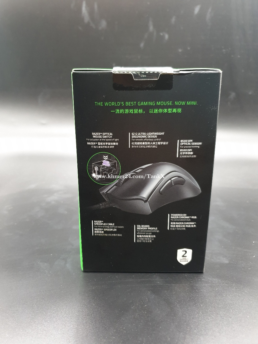 Mouse Razer Deathadder V2 Mini -ល្បឿន 8500 Dpi -តូចល្មមស្រួលកាន់ពេលលេងGame -មានកម្មវិធីSetភ្លេីងRGB Razer Chroma -ធន់និងការលេងgame -មានការធានាត្រឹមត្រូវ -Orignal product FREE delivery