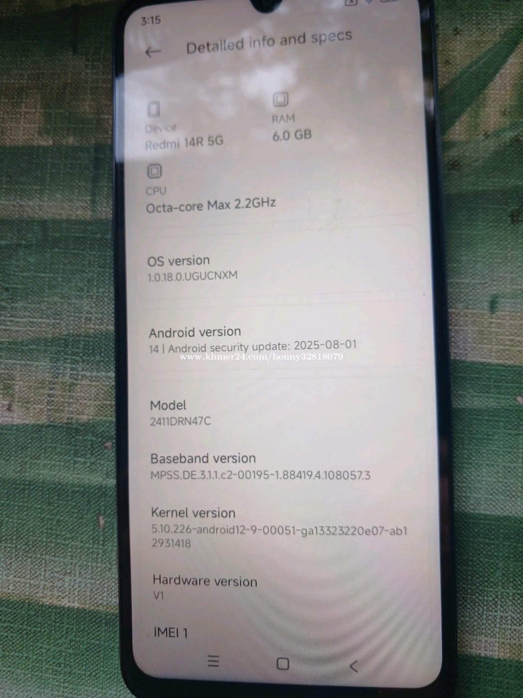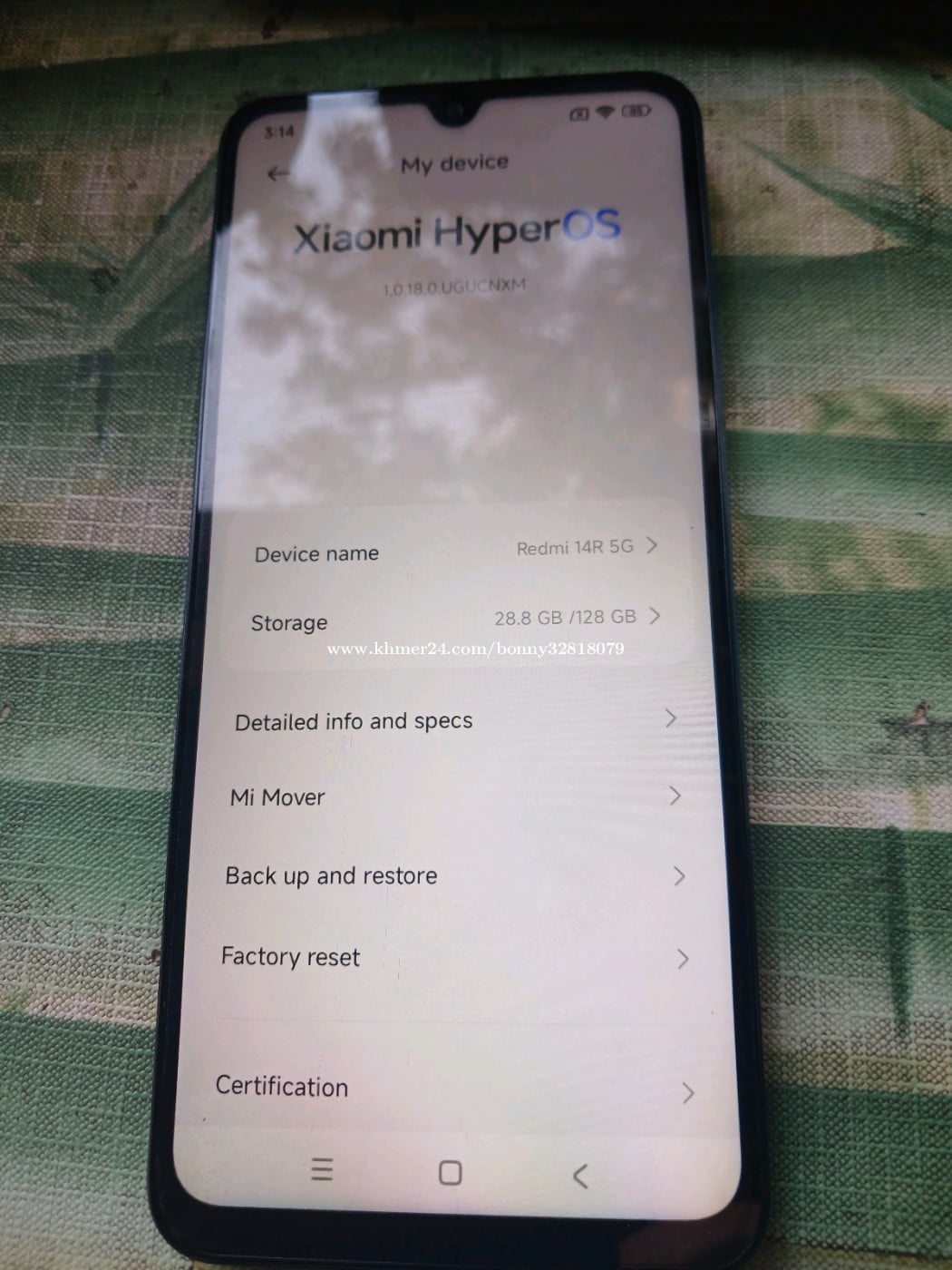 Redmi 14R 5G ស្អាត ថ្មកាន់ phone only CH version