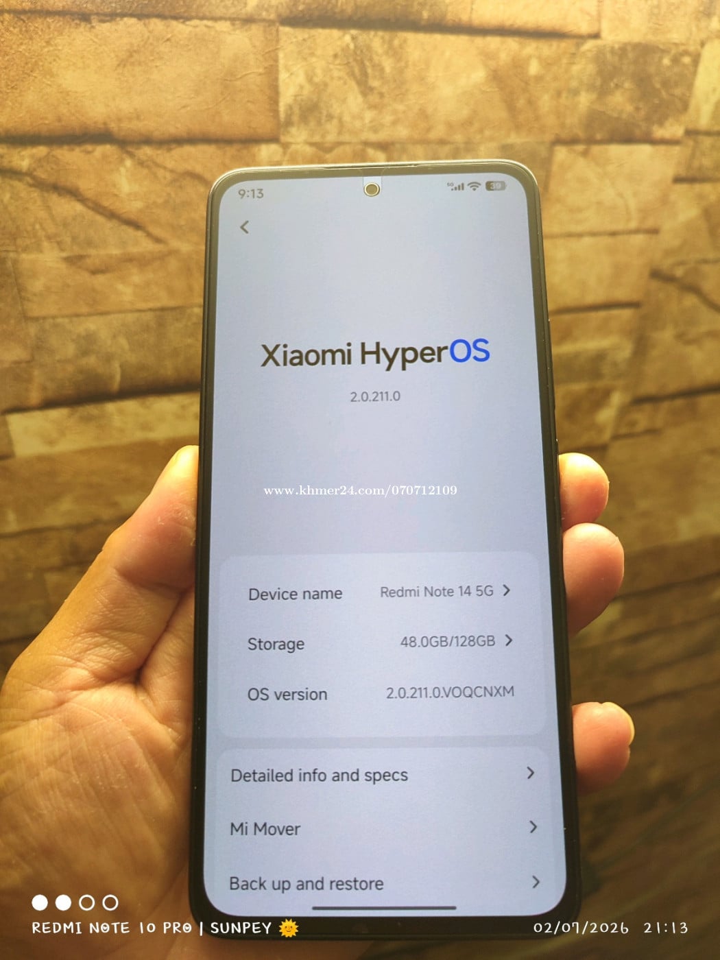 Redmi Note 14 5G Sim 2 CH សានុំស្អាត 99% - Ram 6G+6G/ 128G - មាន Play Store - Camera 50MP ថតច្បាស់ - ថ្មកាន់ណាស់ - អេក្រង់ 120hz - ស្កេកលើអេក្រង់ និង ស្កេបមុខ Only phone 90$ ដាច់ យកឆ្នាំង 93$ ដាច់